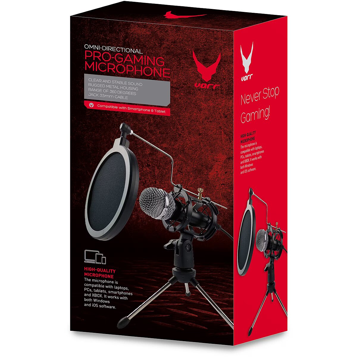 Title - Varr Gaming Microphone Set, Includes Microphone (3.5mm), Pop Filter, Shock Basket, Tripod and Adapter, Microphone sensitivity -58±2dB and omnidirectional, Windows/iOS compatible