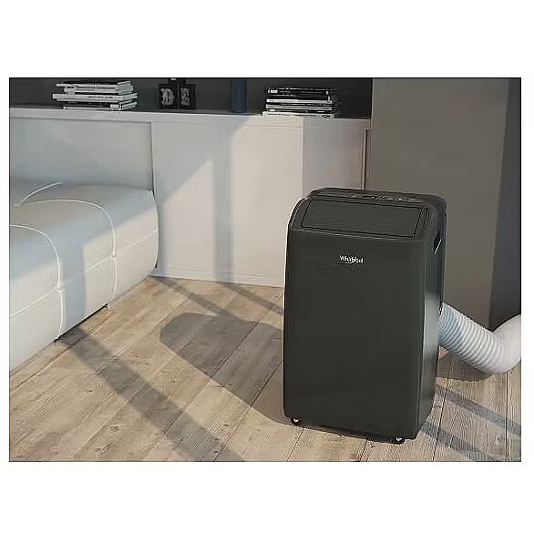 Description - Features of the Whirlpool freestanding air conditioner: A-class energy efficiency. Black colour Smart castors to easily move the air conditioner to any location. On/off heating/cooling. Sixth sense temperature sensor function automatically assesses the room temperature and applies the ideal combination of operating functions to ensure the greatest possible comfort.