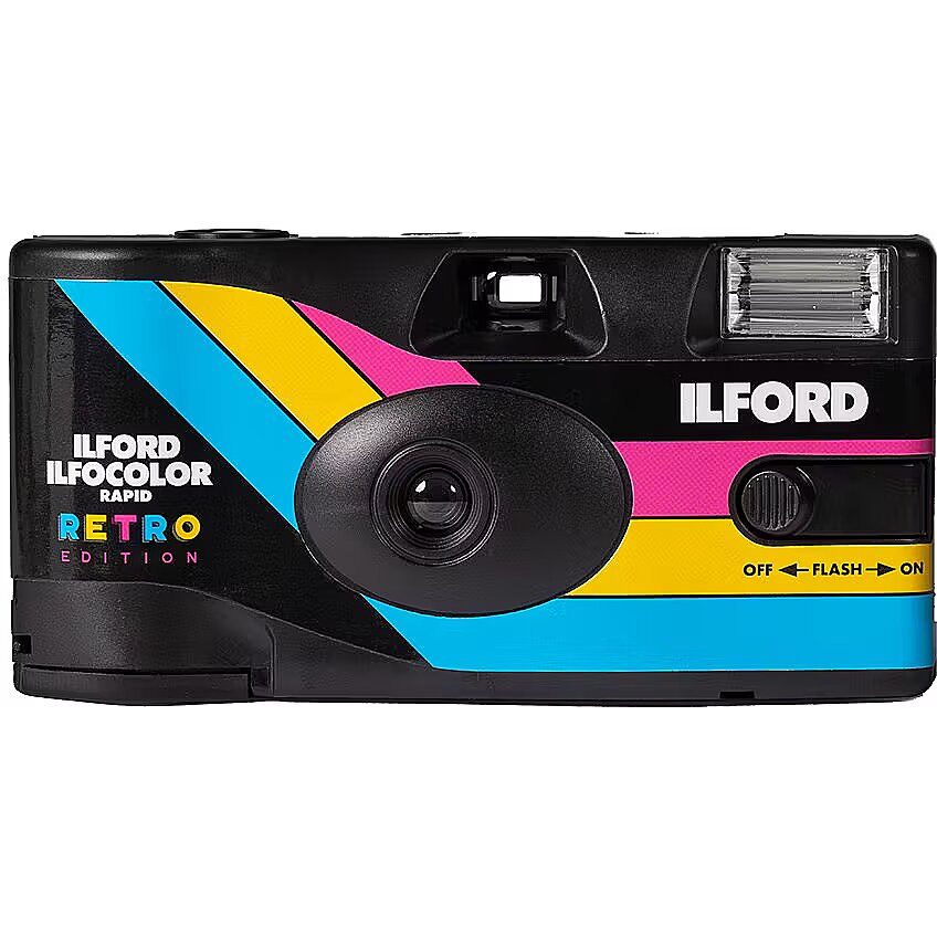 description_en - The ILFORD ILFOCOLOR Rapid single use camera is pre-loaded with 27-exposure ISO 400 colour negative film. The fast film combined with a built-in flash makes the ILFOCOLOR Rapid a versatile performer, delivering great results outdoors and indoors in low light as well. The camera features an optical viewfinder – essential when shooting in bright sunlight. It’s equipped with a fixed-focus wide angle (31mm) f11 lens. Shutter speed is 1/125 sec and delivers sharp images down to 1m. It’s pre-loaded with an AAA battery, with a 15-second recycle time for low light shooting and fill flash in bright daylight. It’s a great way to trial the distinctive look and feel of film without breaking the budget!