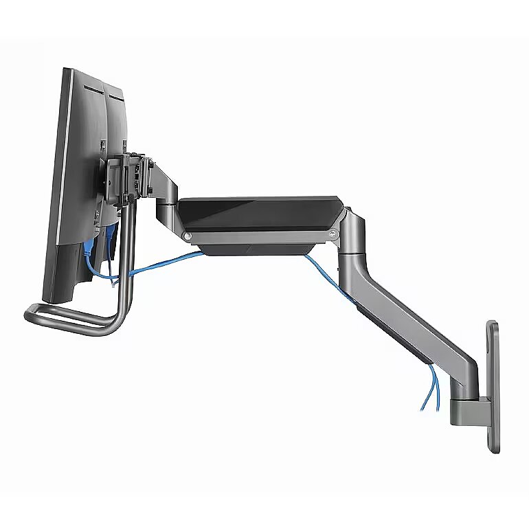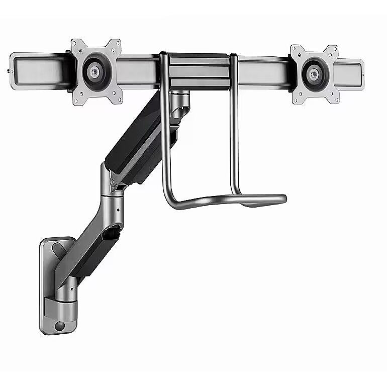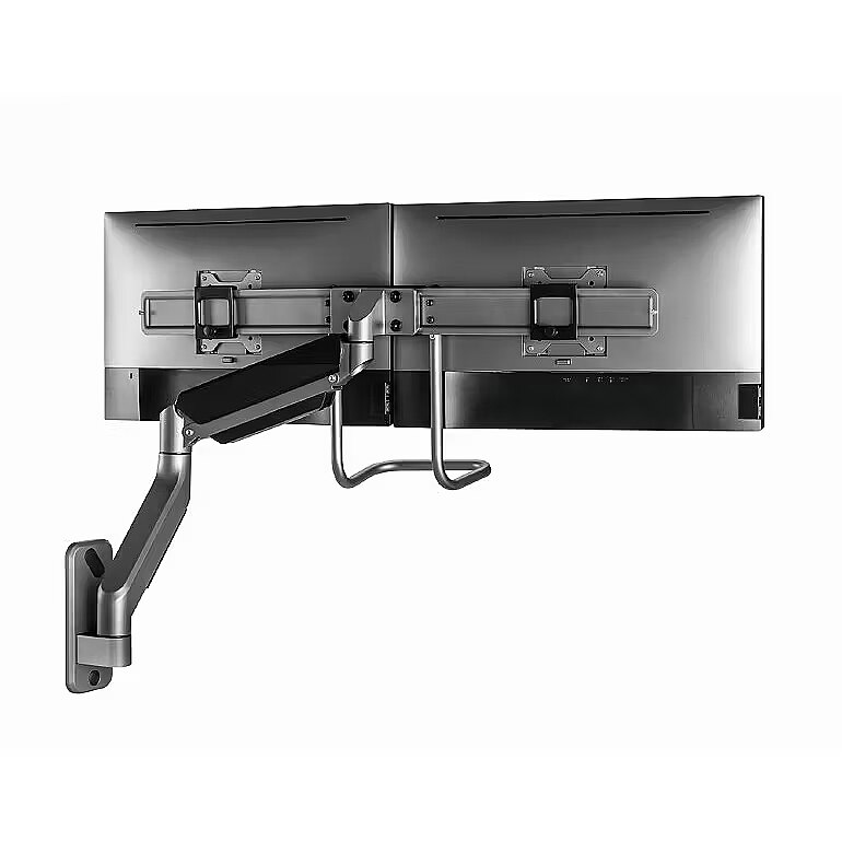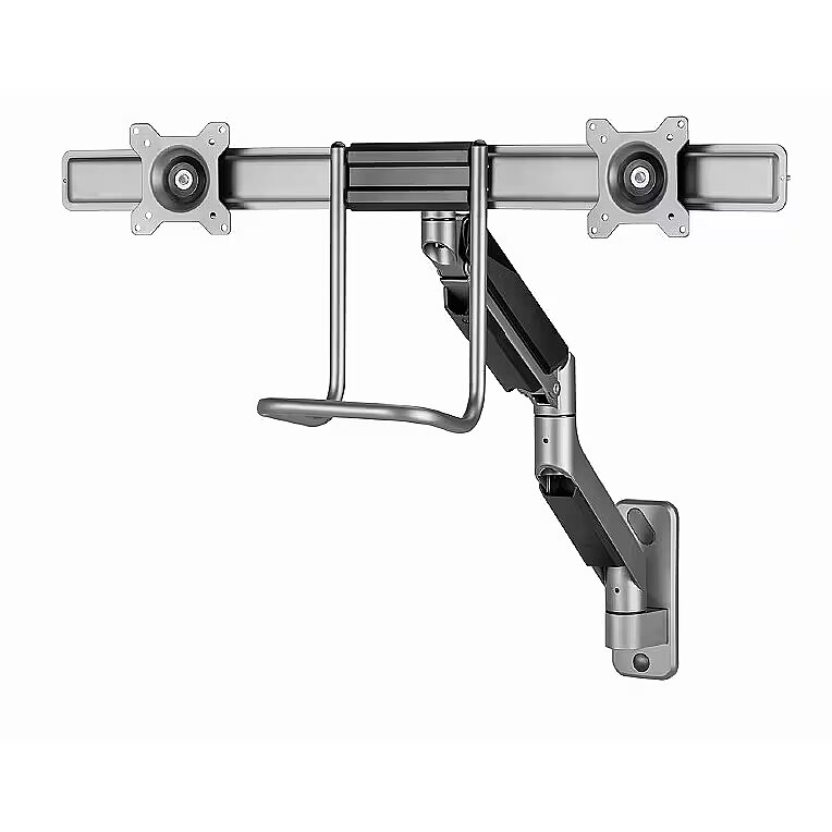 Description - Adjustable wall mounting arm for 2 displays, 17-32, up to 8 kg Set your screen perfectly Lightweight and tiltable design Monitor wall mount with double monitor arms The arms swivel, extend and retract, tilt to change reading angles, and allow displays to be rotated from landscape to portrait mode, etc. Allows easy, ergonomic positioning to reduce workload Works with almost any LCD monitor (max. 32") Durable, adjustable gas springs suitable for monitors weighing 18 kg Built-in cable management keeps your workspace organized and tidy