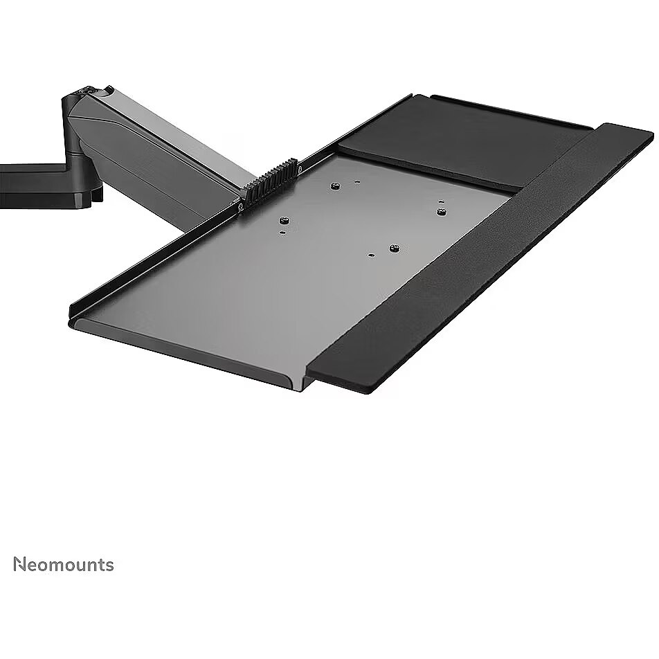 Description - The Neomounts DS90-325BL1 is a full motion height adjustable desk mounted workstation for screens up to 32", keyboard and mouse. The mount can support screens up to 9 kg (curved: 6 kg), while the keyboard tray can support max. 1 kg. The versatile tilt (70°), rotate (360°) and swivel (180°) technology allows the monitor arm to change to any viewing angle to fully benefit from the capabilities of the screen. The keyboard tray includes a wrist support and mouse pad for optimum comfort. The workstation desk mount has a large height adjustability range from 44-95 cm and can be used both seated and standing. To ensure quick repositioning and the most optimal working position, the DS90-325BL1 features gas spring height adjustment for both the monitor arm and keyboard tray arm. The smart cable management system ensures orderly routing of the cables. The DS90-325BL1 is suitable for screens that meet VESA hole pattern 75x75 or 100x100 mm and is equipped with a Quick-release VESA system for fast and easy installation. For non-standard hole patterns, Neomounts has various VESA optional adapter plates available.