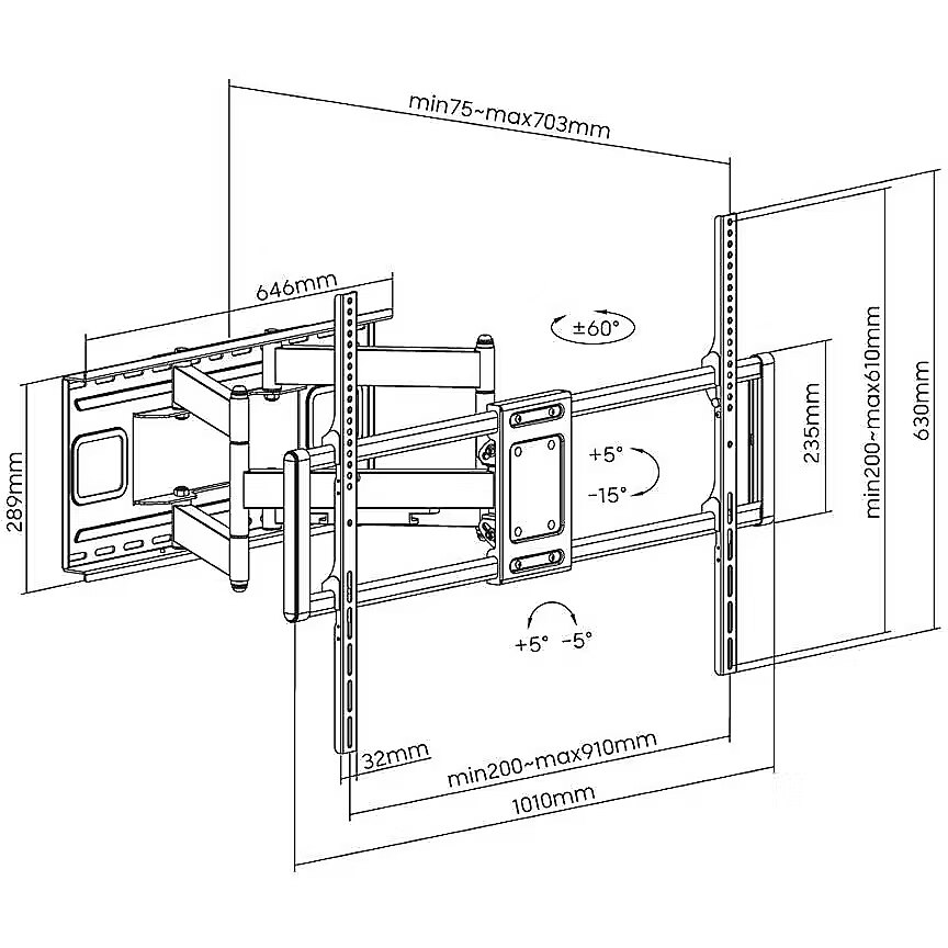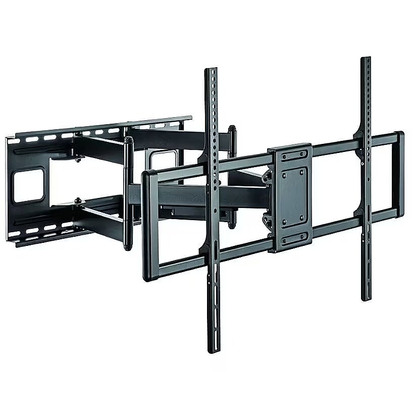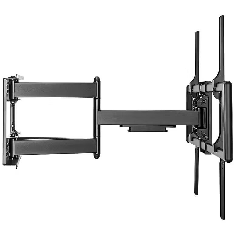 Description - Compact mount, ideal for large TVs Supports up to 120 kg Robust mounting plate and tilt system allows for +/- 5° viewing angle adjustment Extends arm to 703 mm and rotates 120° TV installation and removal is simplified thanks to unique quick release mechanism Tool-free tilt adjustment ensures optimal viewing angles Integrated cable management ensures a clean look