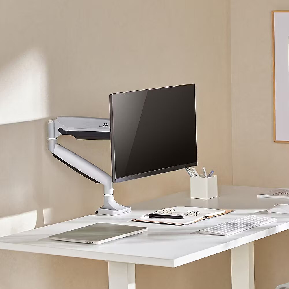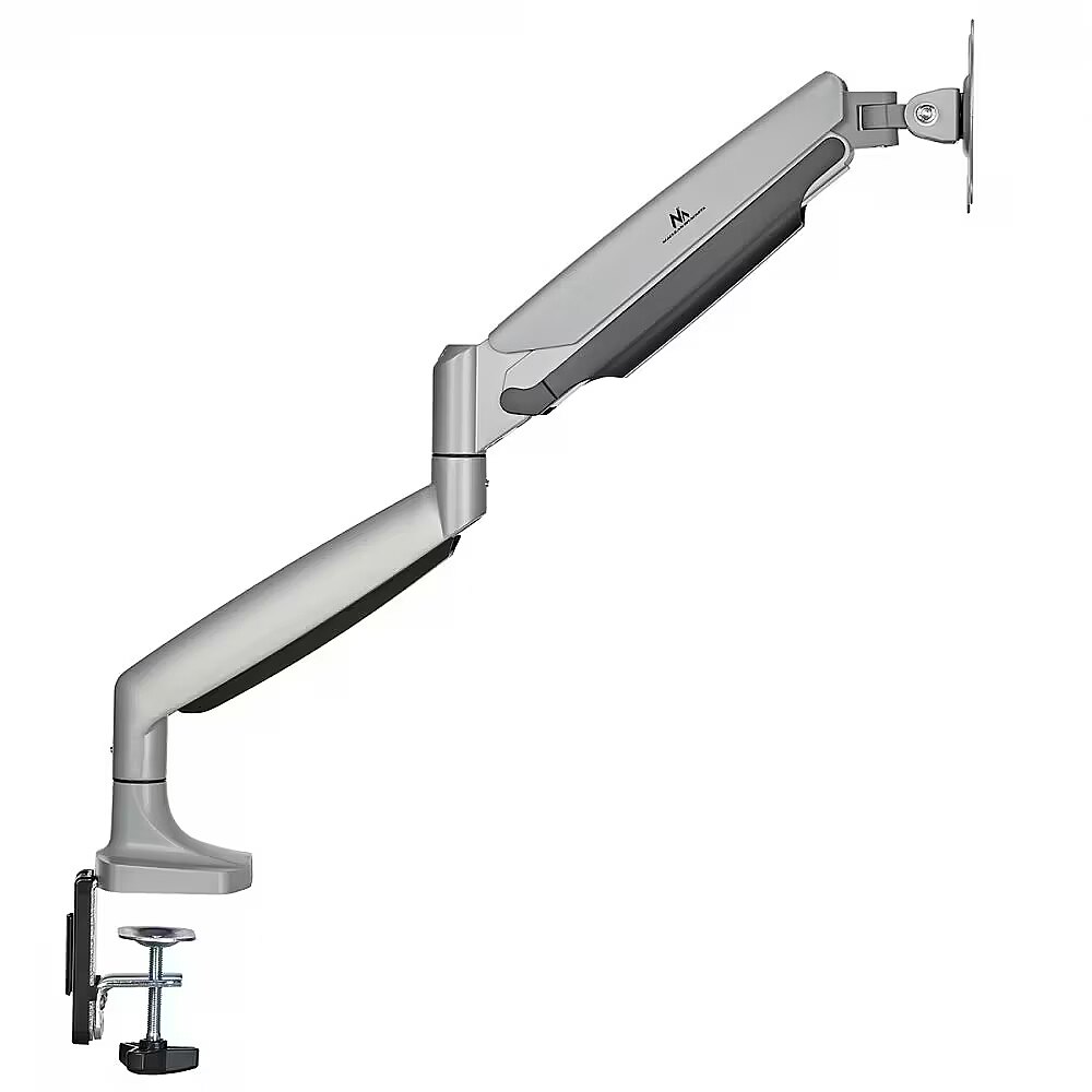 Description - Monitor mount 17-45 inches 16kg gas spring Maclean monitor mount, computer screen holder, double arm, with gas spring, 17"-45", 16 kg, MC-969 Universal LCD or LED monitor mount with the possibility of mounting to a desk top or in a cable hole. The mount is designed for monitors with a screen diagonal from 17" to 45" and a maximum weight of up to 16 kg. The MC-969 mount provides great working comfort, optimizes ergonomics and visibility by adjusting the angle of tilt, rotation, height, etc. This allows you to adjust the position of the monitor fully to your workstation. The mount will easily attach the screen in VESA standard: 75x75, 100x100 mm. The mount is compatible with LED, LCD, OLED monitors of such brands as Sony, LG, Samsung, Philips, Sharp, Panasonic, Toshiba, Grundig, Pioneer, JVC, Benq, Sanyo, NEC, Hyundai, Hitachi, iiyama, Acer, Gigabyte. The mount is equipped with a gas spring for infinite height adjustment of the monitor. This makes it easy to adjust the position of the monitor to your preference, raising or lowering it in just a few seconds. The mount is made of durable materials that guarantee the stability and safety of the monitor. The solid construction allows you to place monitors up to 45'' without worrying about their safety. The modern and neat design of the mount makes it blend in well with most office or home interiors. The MC-969 mount is easy to install and can be attached to a desk top or in a cable hole. All the necessary mounting hardware is included. Cable grommets help to guide cables in an orderly manner. This reduces clutter on your desk, resulting in a neater look and a more organized workspace.