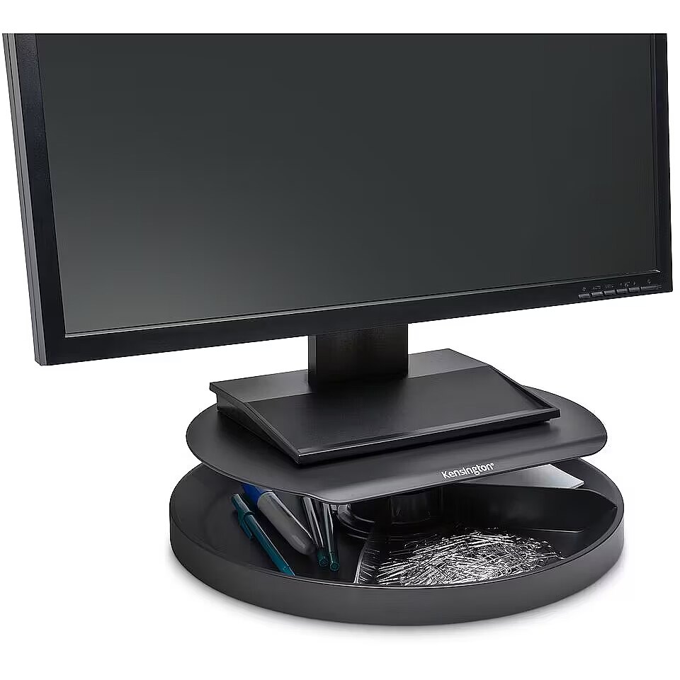 LongDesc - For professionals seeking ergonomic workstation solutions to overcome a variety of ergonomic challenges, from poor posture and eye strain to disorganised workspaces, the SmartFit™ Spin2 Monitor Stand supports a more comfortable and productive workstation. Thoughtfully engineered to maximise desk space, the stand elevates your monitor to improve posture, promote proper eye alignment and support neck and shoulder comfort, while the spinning multi-compartment storage area provides easy access to your most-used desktop tools and accessories. Stable and versatile, it is a dynamic, ergonomic companion for a productive workstation.
