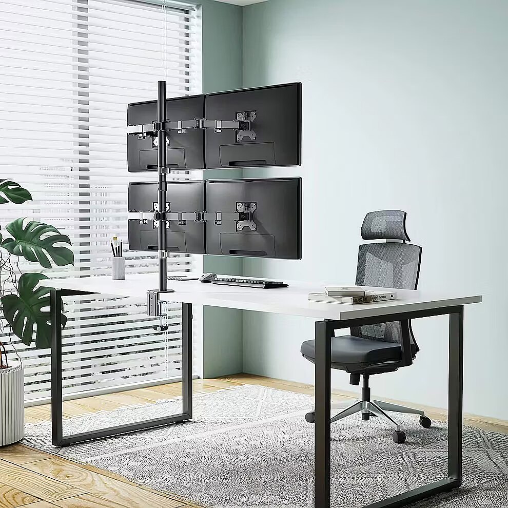 ProductName - Quad Desk Mount for TV & Monitors, For screens 10" to 27", Stand or Clamp Assembly, VESA compatability: 75x75 and 100x100mm - check the dimensions of the four mounting holes on back of screen to ensure it fits, Max 8kg (each), Black, Bracket