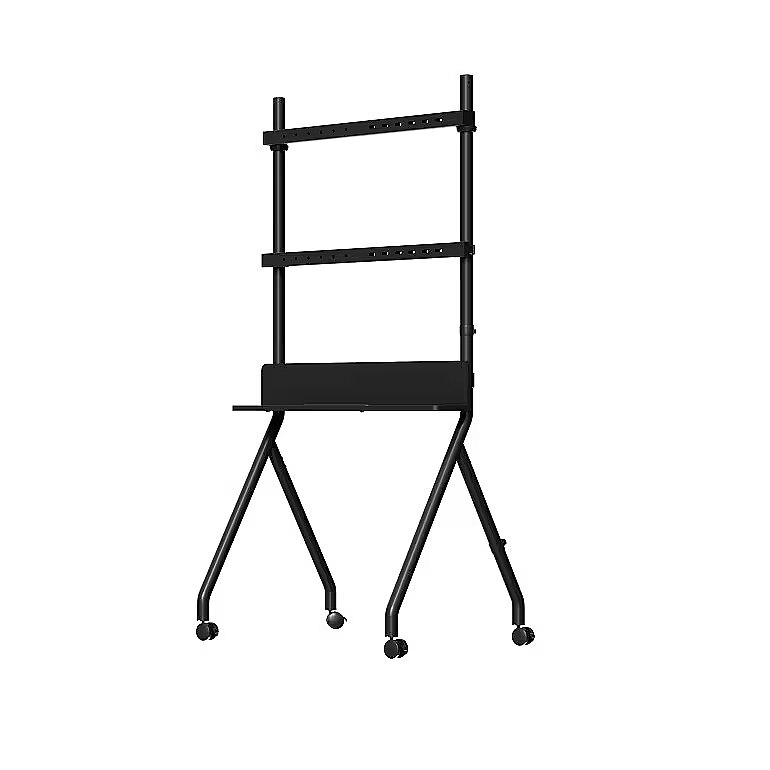 Description - TV floor stand, 55" - 86", black Easily move your TV to any location Perfect for office and educational use Metal TV floor stand with caster wheels Supports most 55” - 86” LCD TV’s Stepless Height Adjustment Practical shelf for equipment or materials Durable caster wheels with locking mechanism VESA compatible, max. 600 mm x 400 mm