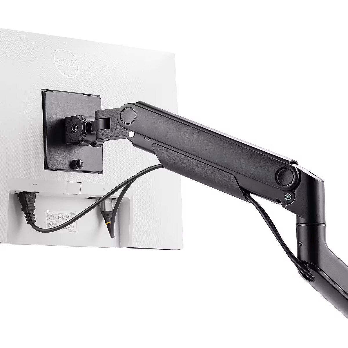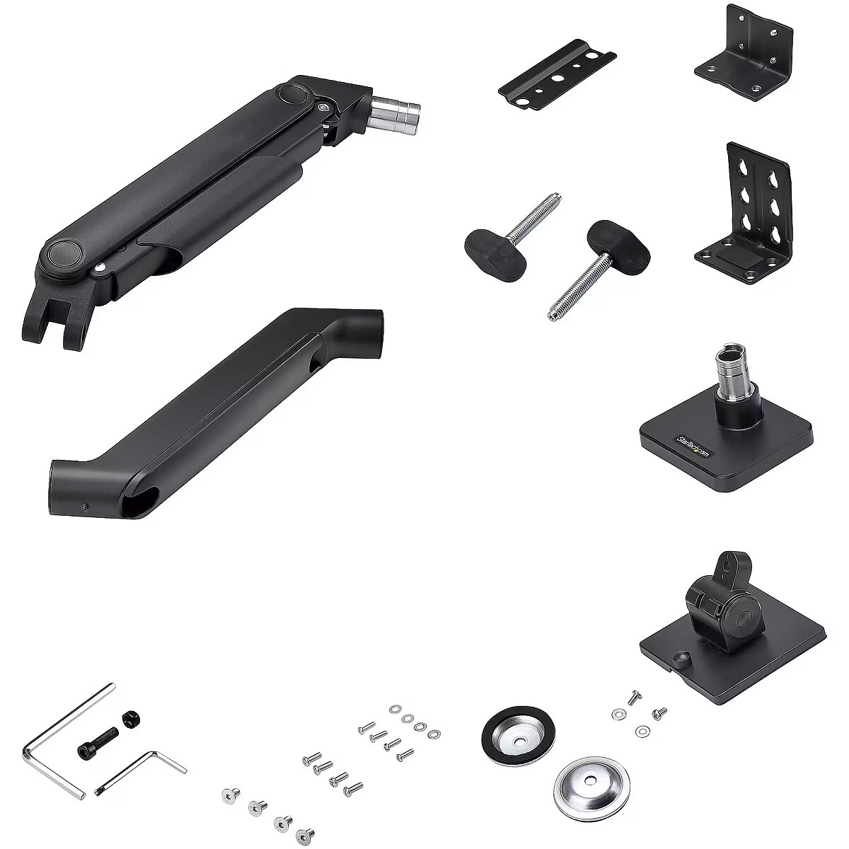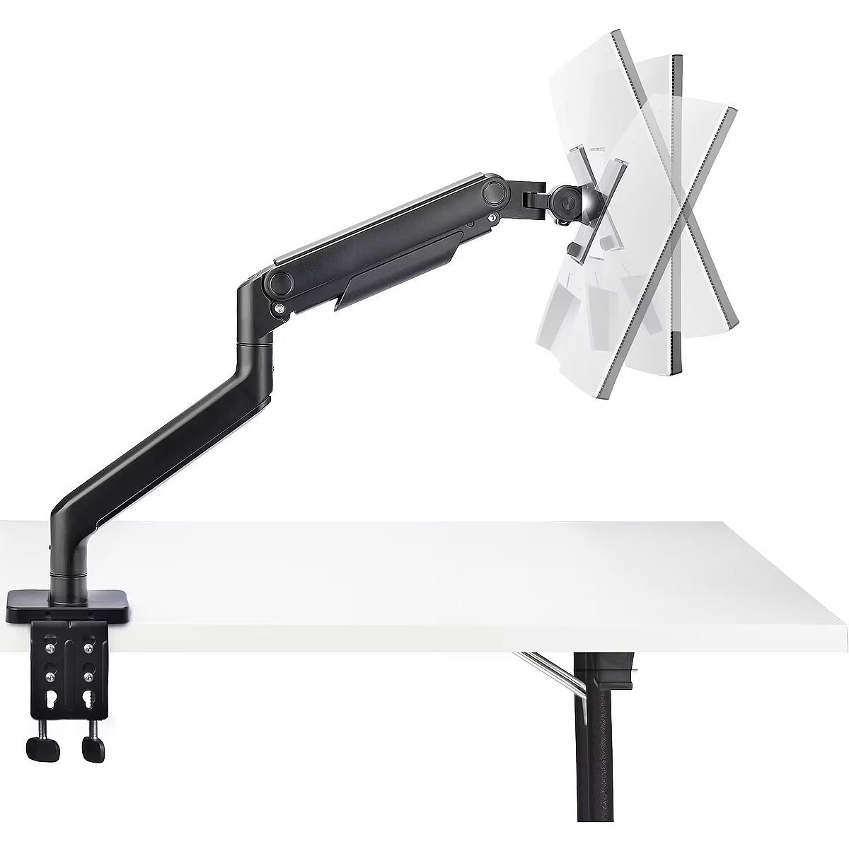LongDesc - Heavy-duty single monitor desk mount with support for up to 49" monitors and height-adjustable articulating armThis monitor desk mount creates an ergonomic workspace for productivity and supports up to 49-inch curved monitors, including 21:9 and 32:9 ultrawide displays. The mechanical spring-assisted arm enables multiple adjustment to suit different ergonomic needs.Height Adjustment with One Smooth MotionThe spring arm enables a height adjustment range of up to 10.8in (27.6cm) to a maximum height of 20in (50.8cm) with effortless one-touch motion. The monitor arm can extend up to 24.4in (62.1cm) from the base of the desktop mount.Range of MotionThe articulating arm enables 180° pan, and the VESA plate features tool-less adjustments of +/-90° horizontal swivel, -20°/+50° tilt, and 360° screen rotation for portrait or landscape orientations. This flexibility enables users to customize the screen placement for maximum productivity and comfort.Durable ConstructionWith its steel and aluminum construction, the premium dial monitor arm supports monitors between 4.4 to 44lb (2 to 20kg). This ensures long-lasting stability and reliability, making it ideal for office and home setups.Cable ManagementTo maintain an organized workspace, the arms feature a cable management channel along the underside to keep cables out of sight, reducing clutter and contributing to a tidy setup.The StarTech.com Advantage