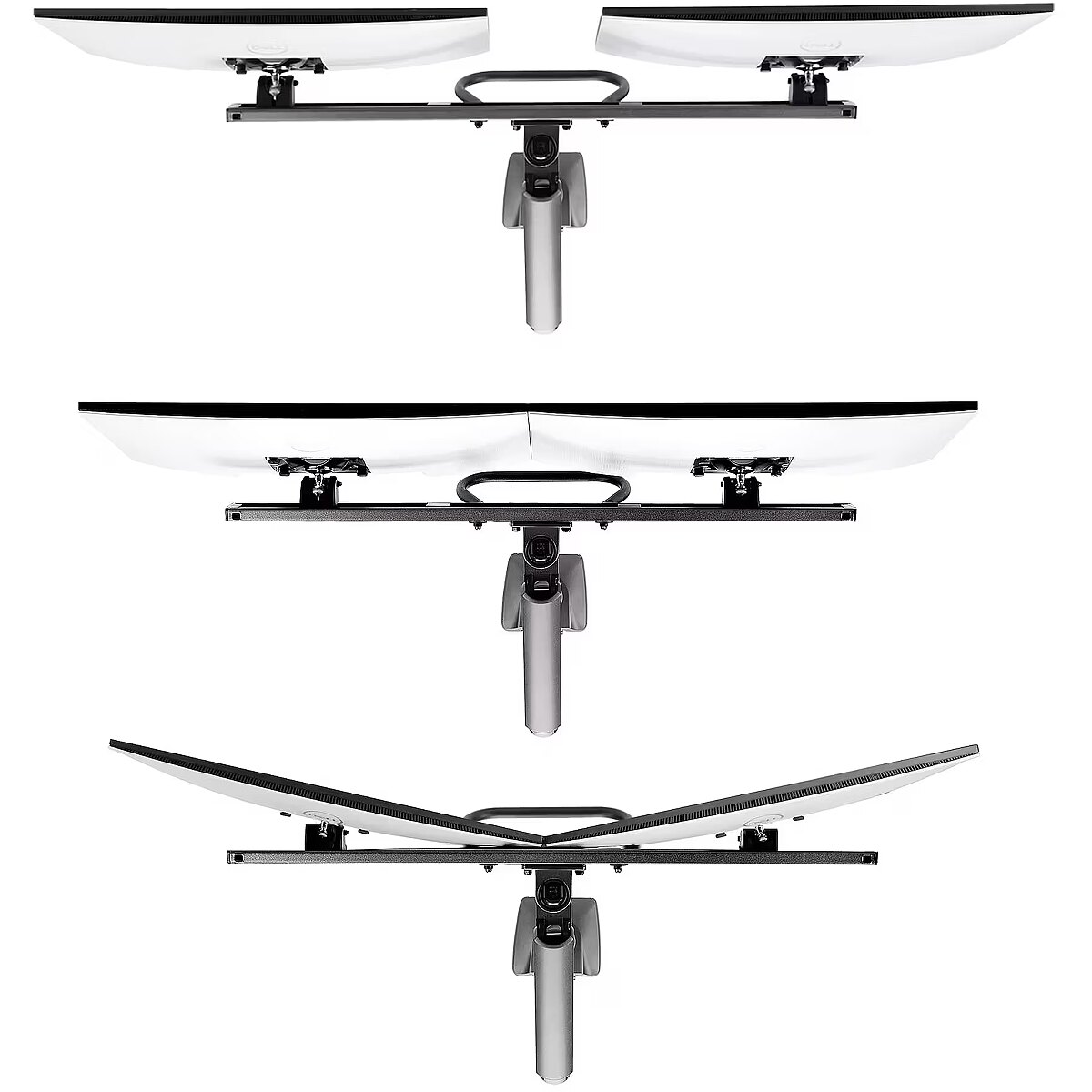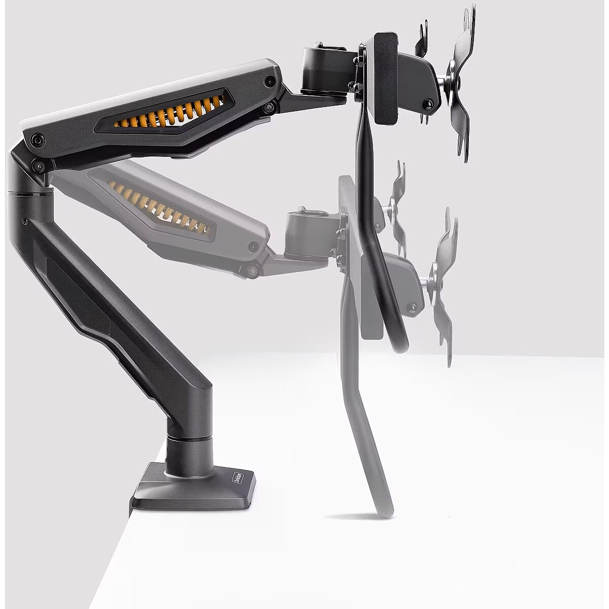 ProductName - Desk Mount Dual Monitor Arm with Crossbar, Up To 27" Displays, VESA 75x75/100x100, Max 33lb/15kg, C-Clamp, Fully Articulating, Mechanical Spring, TAA
