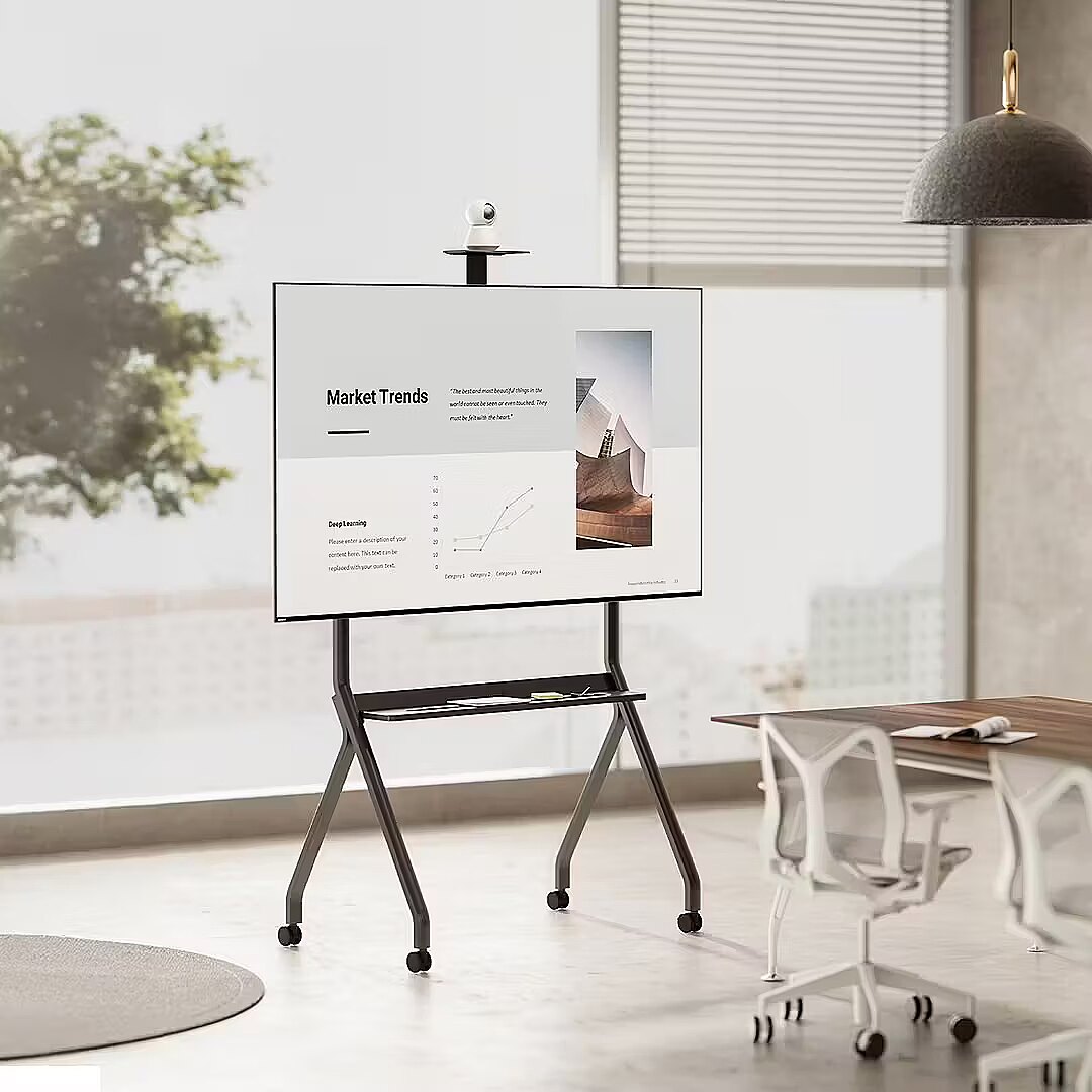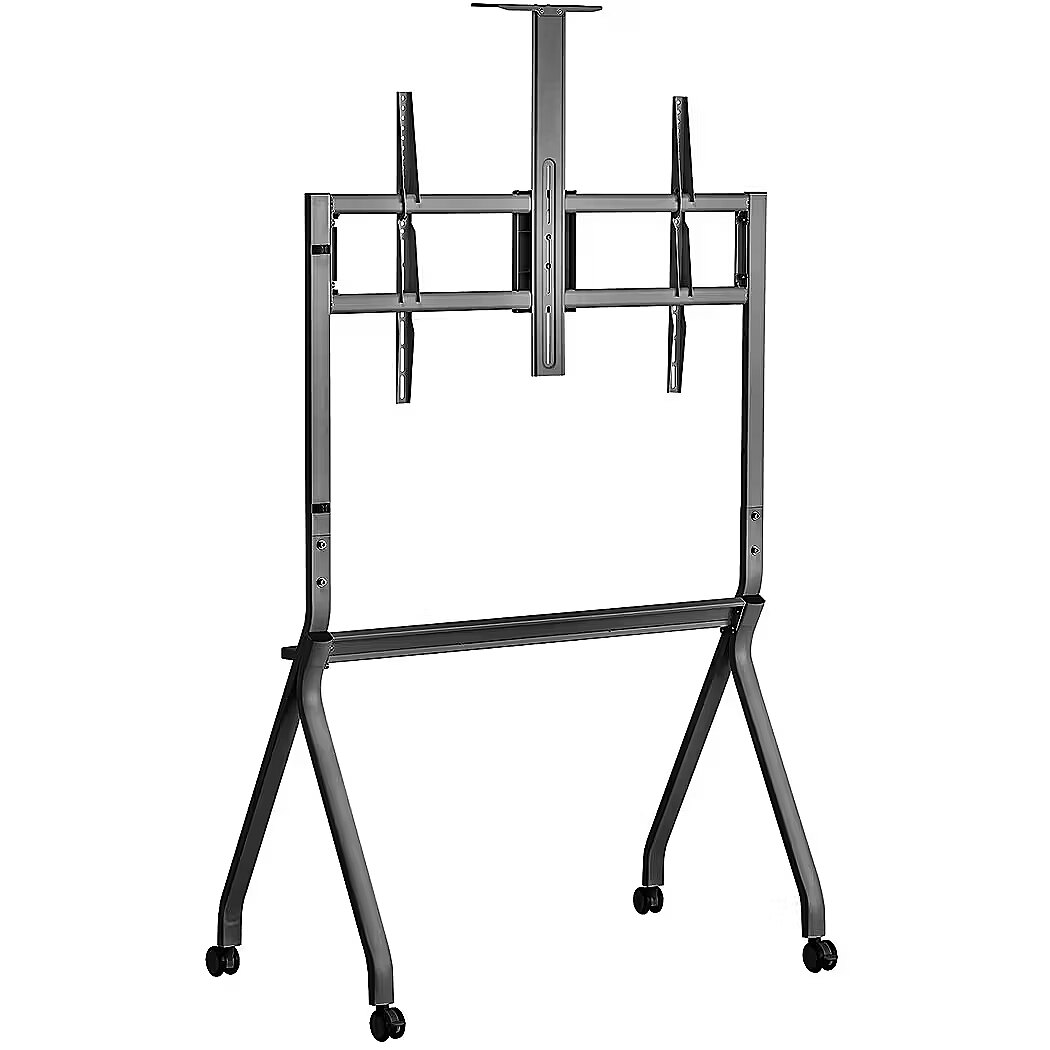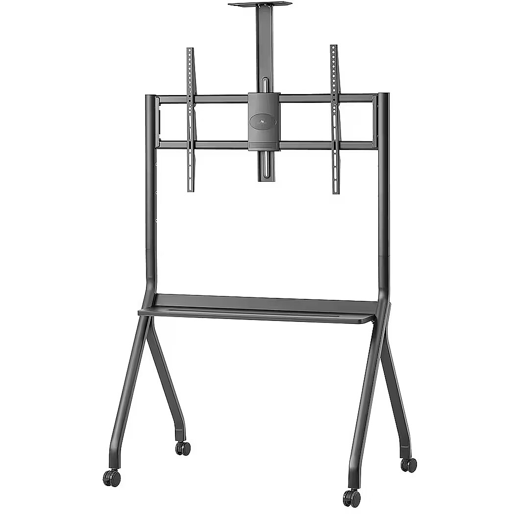 Description - Maclean MC-114 TV stand/cart is a sturdy and functional solution for professional use in offices, conference rooms, schools or event spaces. The structure is made of durable powder-coated steel, ensuring stability and safe use even with large screens. Thanks to the use of casters, the whole thing can be moved easily and safely, allowing flexible space management and quick adaptation of the room layout to current needs. The cart is compatible with TVs from 55 to 100 inches and VESA mounting standard up to 900x600 mm. The maximum load of up to 120 kg guarantees stable support of even the largest LED/LCD screens. The TV can be hung at four different heights, allowing you to adjust the position of the screen to a specific location and users' needs. Such a solution ensures an optimal viewing angle and improves the comfort of content viewing in different conditions.