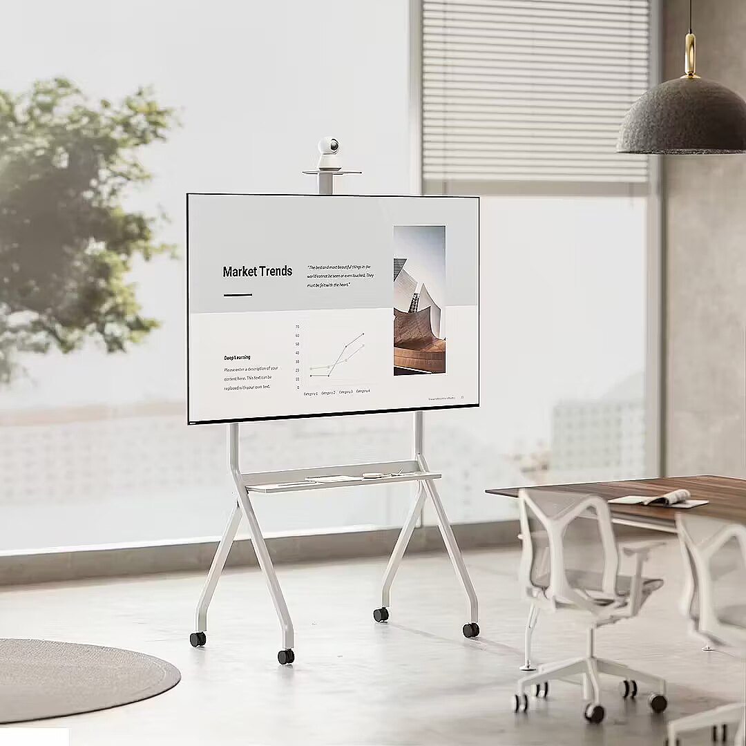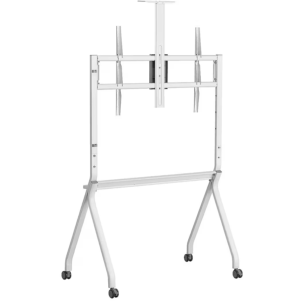 Description - Maclean MC-114 TV stand/cart is a sturdy and functional solution for professional use in offices, conference rooms, schools or event spaces. The structure is made of durable powder-coated steel, ensuring stability and safe use even with large screens. Thanks to the use of casters, the whole thing can be moved easily and safely, allowing flexible space management and quick adaptation of the room layout to current needs. The cart is compatible with TVs from 55 to 100 inches and VESA mounting standard up to 900x600 mm. The maximum load of up to 120 kg guarantees stable support of even the largest LED/LCD screens. The TV can be hung at four different heights, allowing you to adjust the position of the screen to a specific location and users' needs. Such a solution ensures an optimal viewing angle and improves the comfort of content viewing in different conditions.