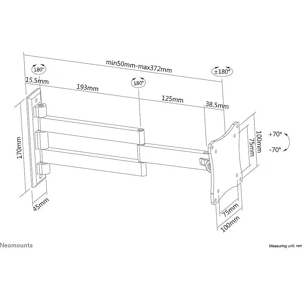 LongProductName - Neomounts FPMA-W830BLACK Full motion Monitor/TV mount wall - 10-27" - max 12 kg - VESA 75x75-100x100 - d 5-37 cm - black