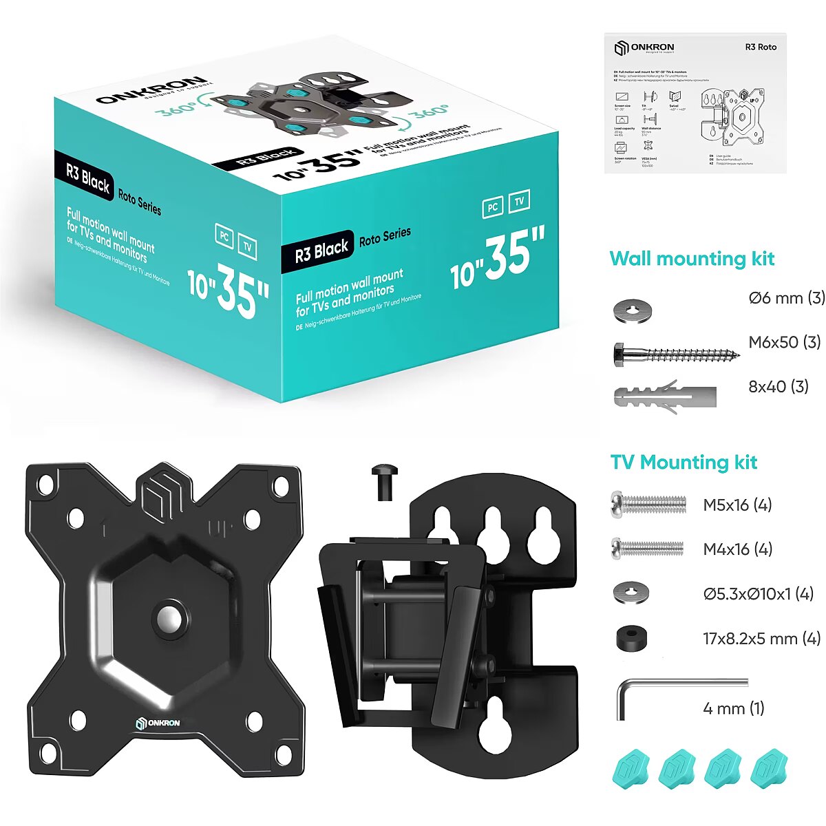 Vendor Homepage - onkron-uk.co.uk/products/onkron-swivel-tilt-rotate-tv-wall-mount-for-10-32-inch-flat-curved-led-tvs-wall-mount-screens-up-to-20-kg-min-75x75-max-vesa-100x100-wall-mount-r3-b-black?_pos=1&_sid=56bdac723&_ss=r