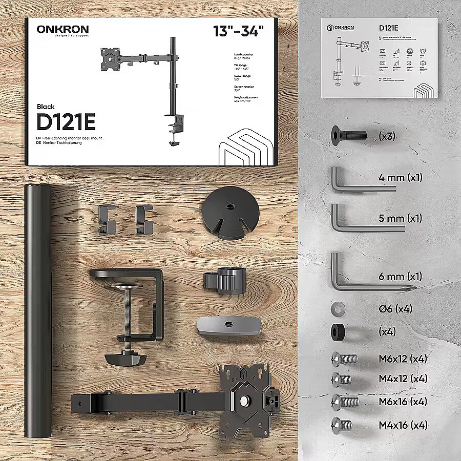 Description - ONKRON Desk Mount for Monitor 13"- 34", tilt-swivel, with rotation, max 8 kg, VESA up to 100x100