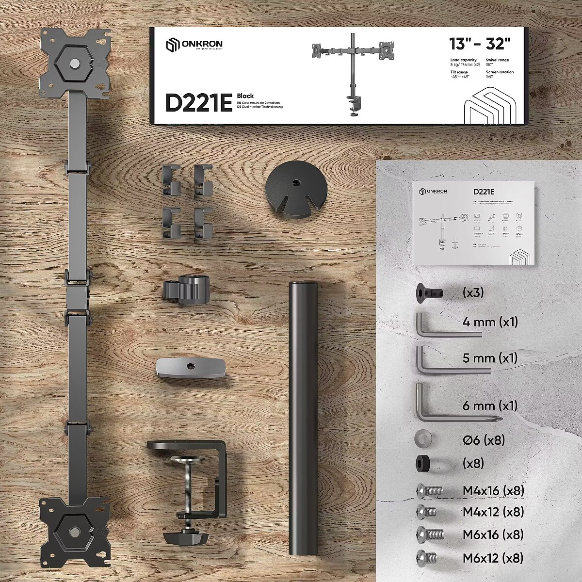 Vendor Homepage - onkron-uk.co.uk/products/onkron-dual-monitor-desk-mount-for-13-34-inch-screens-min-75x75-max-vesa-100x100-desk-mount-8-x2-kg-swivel-black-d221e-b?_pos=1&_sid=852d65d3c&_ss=r