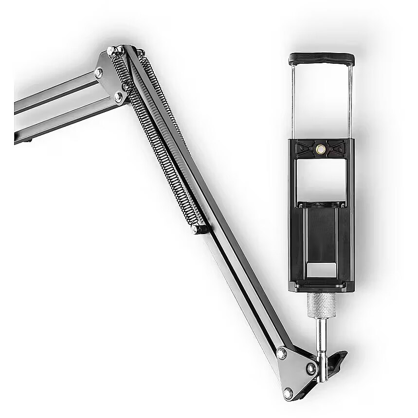 Iga õlg võimaldab sujuvat kõrguse reguleerimist, pööramist, kallutamist ja pikendamist. Tahvli- ja nutitelefonihoidikud toetavad nii püst- kui rõhtasendit, kaameraõlg koos kuulpeaga võimaldab täpset nurga seadistust.