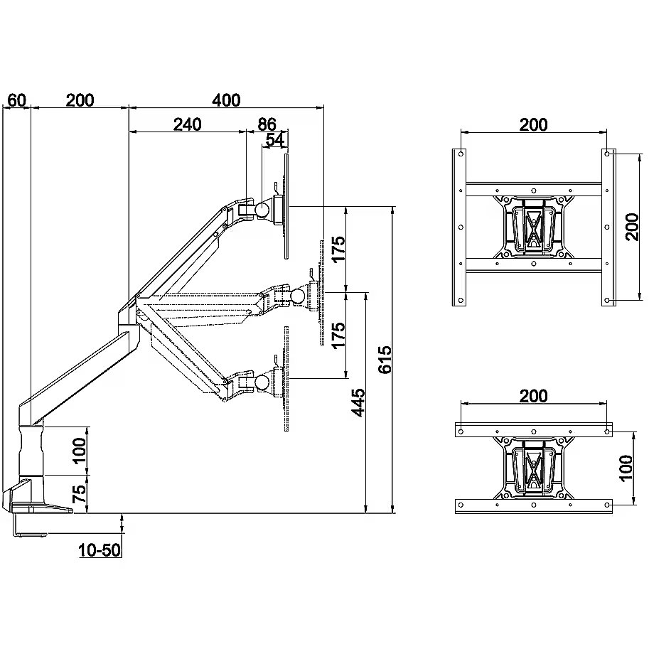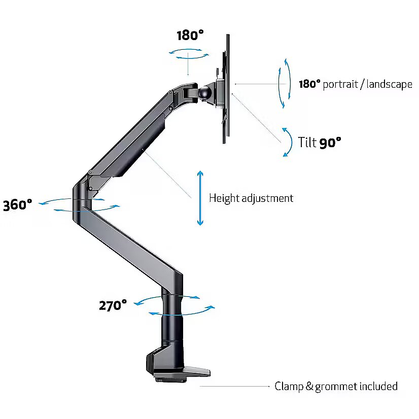 LongProductName - M VESA Gas Lift XL Single Black HD - Mounting kit ( articulating arm, desk clamp mount ) for LCD display - aluminum - screen size: 15" - 49" - VESA: 75x75, 100x100 and 200x200 mm - max height: 615 mm - black