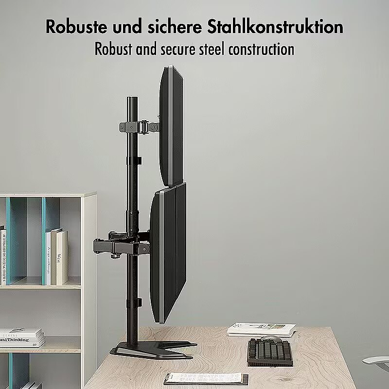 Description - Our sturdy and versatile triple monitor mount is designed to optimise your workspace. It securely holds three monitors, reduces clutter and increases productivity. Height, tilt and rotation can be easily adjusted for a personalised viewing experience. The sturdy construction ensures stability, while the sleek design adds a modern touch to your desk. Say goodbye to neck strain and look forward to effortless multitasking. Enhance your setup with our monitor mount for three monitors.