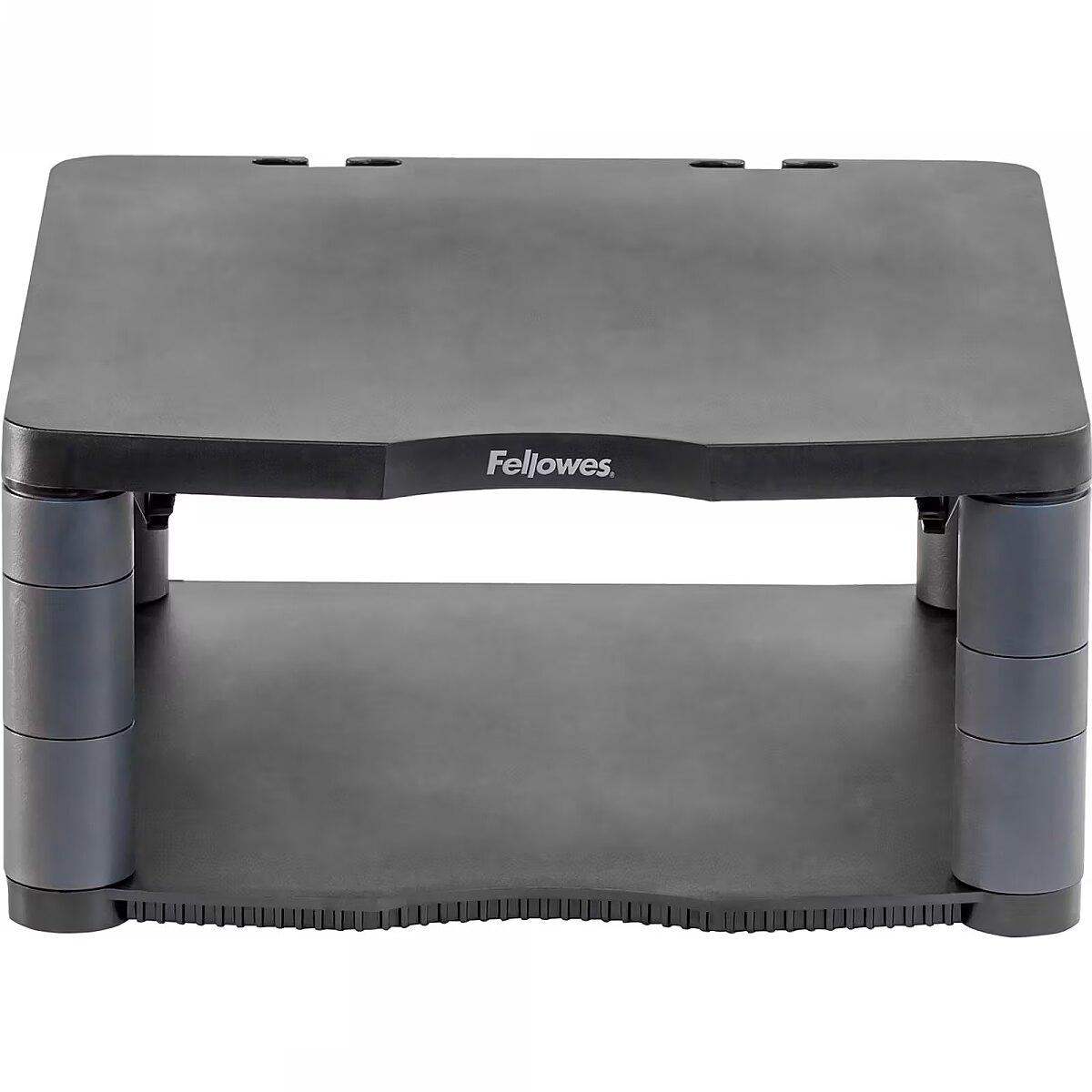 LongDesc - A few easy adjustments to your workstation can make a huge difference to your daily routine. Moving your head to view your screen or to read documents requires you to tilt and turn your neck and upper back. Positioning your screen incorrectly can put serious strain on your eyes, neck and shoulders which is why this Fellowes computer stand is a necessity for your workspace as it allows you to place your monitor at a more ergonomically-correct viewing position to suit you. This adjustable monitor stand can support up to a 21 Inch CRT or TFT/LCD monitor or a maximum weight of 36 kg, and features non skid foot rings, ensuring stability on any surface. Accommodate the ideal viewing angle that ideal suits your needs, the Standard computer stand features five height adjustable settings (65-165 mm) allowing you to find a comfortable screen position accustomed to you. This monitor riser is accredited by FIRA International, an independent Ergonomic Accreditor.