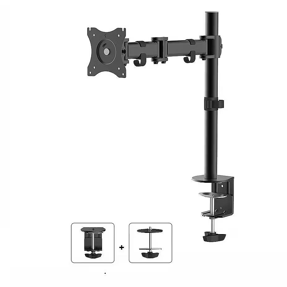 LongDesc - The Neomounts desk mount, model NM-D135BLACK is a tilt-, swivel and rotatable desk mount for flat screens up to 27". This mount is a great choice for space saving placement on desks using a desk clamp or grommet mount.Neomounts versatile tilt (90°), rotate (360°) and swivel (180°) technology allows the mount to change to any viewing angle to fully benefit from the capabilities of the flat screen. The mount is manually height adjustable from 0 to 41,5 centimetres. Depth adjustable from 0 to 41 centimetres. An innovative cable management conceals and routes cables from mount to flat screen. Hide your cables to keep the workplace nice and tidy.Neomounts NM-D135BLACK has three pivot points and is suitable for screens up to 27". The weight capacity of this product is 8 kg each screen. The desk mount is suitable for screens that meet VESA hole pattern 75x75 or 100x100mm. Different hole patterns can be covered using Neomounts VESA adapter plates.By using an ergonomic mount neck- and back complaints can be avoided. Ideal for use in offices and on counters or in a reception area.All installation material is included with the product.
