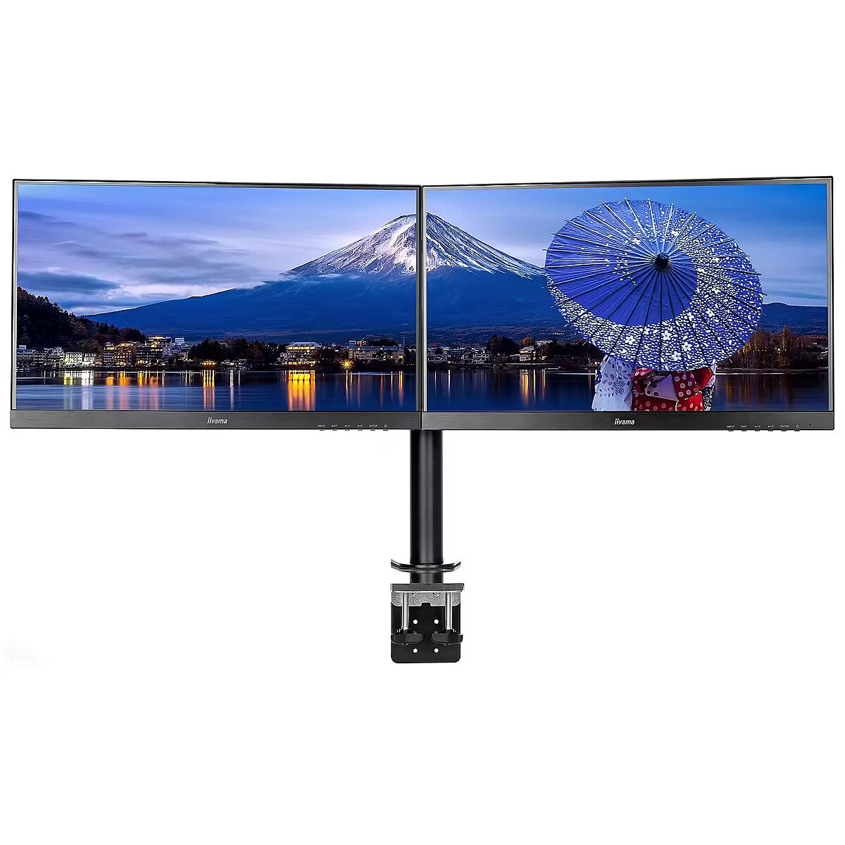 LongDesc - The iiyama DS1002C-B1 is a desk mount (clamp) for two flat screens up to 30”. Thanks to the arm you can save space on your desk and the cable management system helps to keep your workplace tidy. Broad adjustment capabilities, including tilt, swivel, height and rotation, the arm offers, allow you to easily adjust the position of the screens to your preferences assuring comfortable and healthy body posture.