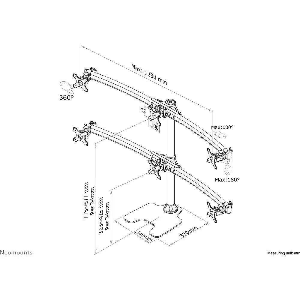 LongSummaryDescription - Neomounts FPMA-D700DD6 Monitor stand 10-27". Mounting: Freestanding/Grommet, Maximum weight capacity: 8 kg, Minimum screen size: 25.4 cm (10"), Maximum screen size: 68.6 cm (27"), Minimum VESA mount: 75 x 75 mm, Maximum VESA mount: 100 x 100 mm. Height adjustment, Swivel angle range: 0 - 180°, Tilt angle range: 0 - 180°. Product colour: Black