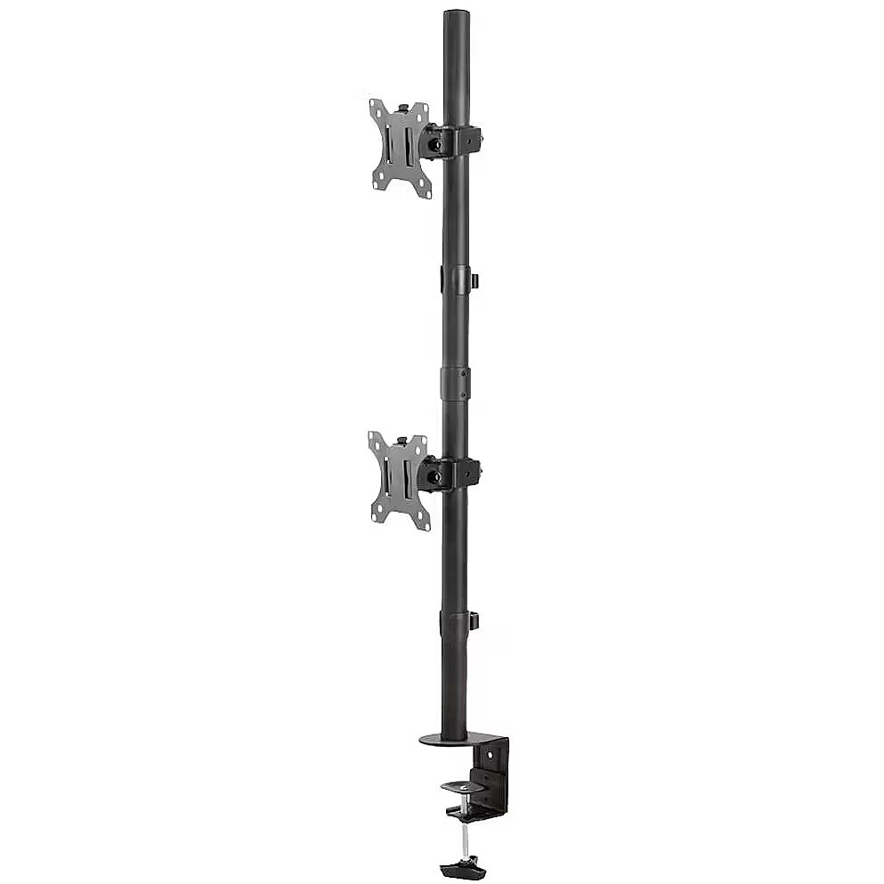 LongDesc - The Neomounts desk mount, model FPMA-D550DVBLACK is a tilt-, swivel and rotatable desk mount for 2 flat screens up to 32". This mount is a great choice for space saving placement on desks using a desk clamp or grommet mount.Neomounts versatile tilt (90°), rotate (360°) and swivel (180°) technology allows the mount to change to any viewing angle to fully benefit from the capabilities of the flat screen. The mount has a height of 88 centimetres. An innovative cable management conceals and routes cables from mount to flat screen. Hide your cables to keep the workplace nice and tidy.Neomounts FPMA-D550DVBLACK has one pivot point and is suitable for screens up to 32". The weight capacity of this product is 6 kg each screen. The desk mount is suitable for screens that meet VESA hole pattern 75x75 or 100x100mm. Different hole patterns can be covered using Neomounts VESA adapter plates.By using an ergonomic mount neck- and back complaints can be avoided. Ideal for use in offices and on counters or in a reception area.All installation material is included with the product.
