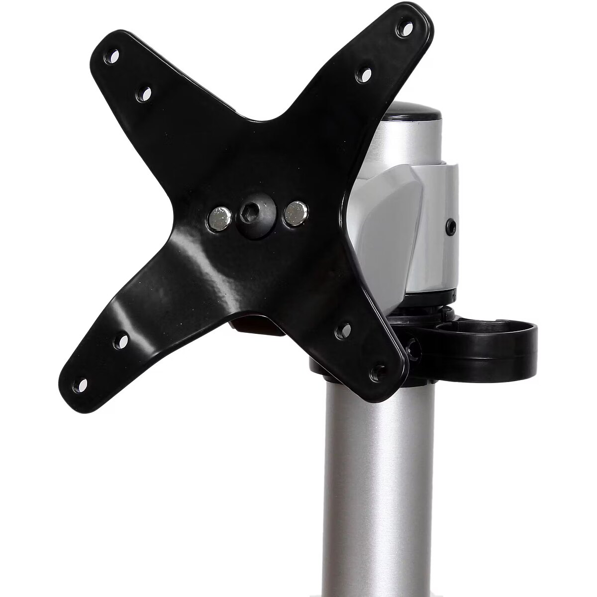 LongDesc - VESA Monitor Mount | Desk/Grommet MountSave space and work in greater comfort with this monitor desk mount. The simple and stylish monitor pole lets you mount a single VESA mount monitor (75x75, 100x100) above your desk or table, and adjust the position of your display for ideal viewing.Create an Ergonomic Work SpaceWith the computer screen mount, you can suspend your display on a support post above the desk surface and adjust your display height, position and viewing angles easily for an ergonomic work environment. The display mount gives you the added benefit of reclaiming valuable workspace on your desk. The steel single-monitor mount securely supports displays up to a maximum weight of 30.9 lb. (14 kg).Easy Height Adjustment Along the PoleThe height adjustable monitor arm features an 11.89" (302mm) tall support post, so you can adjust the height of your monitor along the pole.Adjust your Screen PositionEnjoy optimum viewing with easy tilt adjustment. The VESA mount can be rotated 360 degrees around the support pole to adjust your screen position. For viewing longer pages or blocks of code without scrolling, the monitor arm also supports landscape to portrait display rotation.Steel ConstructionThe display mount is made of steel for long-lasting performance.Easy and Flexible InstallationThe desk clamp monitor mount is easy to install. For added installation flexibility, the included mounting hardware can either clamp to the side of your desk, or mount through a grommet hole. The display mount integrates a cable management hook to keep things neat.The TAA compliant ARMPIVOT is backed by a StarTech.com 10-year warranty and free, lifetime technical support.The StarTech.com Advantage