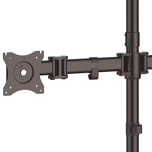 LongDesc - Increase productivity and free up space by mounting four monitors to this attractive desktop standThis free-standing quad-monitor stand saves you valuable desk space and boosts productivity, by creating a more comfortable and ergonomic workspace. Constructed of steel and aluminum, the robust monitor stand suspends up to four monitors above your desk or other work surface.Work with greater comfort and productivityClear up your desk surface and enjoy an ergonomic workspace. This computer monitor stand supports four displays that are each 13” to 27” (330 to 686 mm) in size and up to 17.6 lb. (8 kg) in weight.With its dual-crossbar design, this monitor stand lets you mount four monitors onto a single base that rests on your desktop. This gives you more surface area on your desk for personal devices or for physical tasks like reviewing paper documents. And, adding extra monitors gives you ample screen space to simplify multitasking -- using four displays makes it easier to reference material on several screens while working on another, saving you the time and hassle of having to flip back and forth between documents.Adjust to the right viewing angleThe monitor stand enables easy adjustment of your screen position, with +45°/-45° swivel, +45°/-45° tilt, and full 360° rotation. The structure offers smooth, effortless rotating and positioning in any direction, so it's easy to reduce glare and find the ideal viewing angle. The micro-adjustment features enable the level alignment of your four monitors. You can also adjust the height of the monitors along the 32.2” (818 mm) pole.Rugged steel and aluminum constructionThe quad-monitor stand is engineered with heavy-duty steel and aluminum and features a solid steel base. The surface finish features a powder coating to resist scratches. To help keep your work area free of clutter, the monitor stand also features cable clips that keep your cables neatly out of sight.The ARMBARQUAD is backed by a StarTech.com 5-year warranty and free lifetime technical support.The StarTech.com Advantage- Free-standing monitor stand supports four monitors, each up to 27” (686 mm) in size and 17.6 lb. (8 kg) in weight- Solid steel base and heavy-duty steel and aluminum construction for optimum support- Micro-adjustment enables level viewing of four monitors