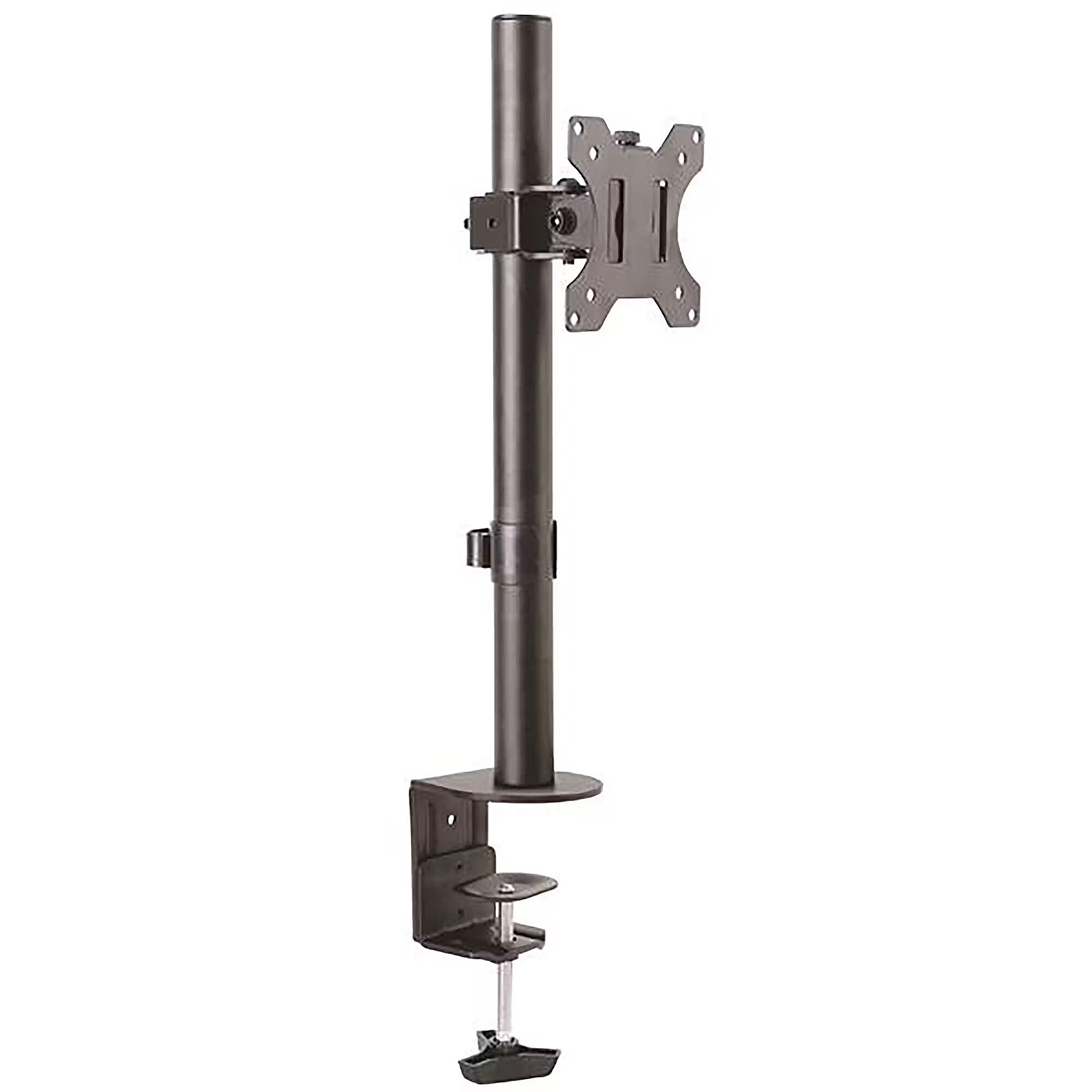 LongSummaryDescription - StarTech.com Single Monitor Desk Mount - Single Screen Heavy Duty Pole Mount for up to 8kg VESA Compatible Displays - Ergonomic Height Adjustable Monitor Arm Mount - Desk Clamp/Grommet. Mounting: Clamp, Maximum weight capacity: 8 kg, Minimum screen size: 33 cm (13"), Maximum screen size: 81.3 cm (32"), Minimum VESA mount: 75 x 75 mm, Maximum VESA mount: 100 x 100 mm. Height adjustment, Tilt angle range: -45 - 45°. Product colour: Black
