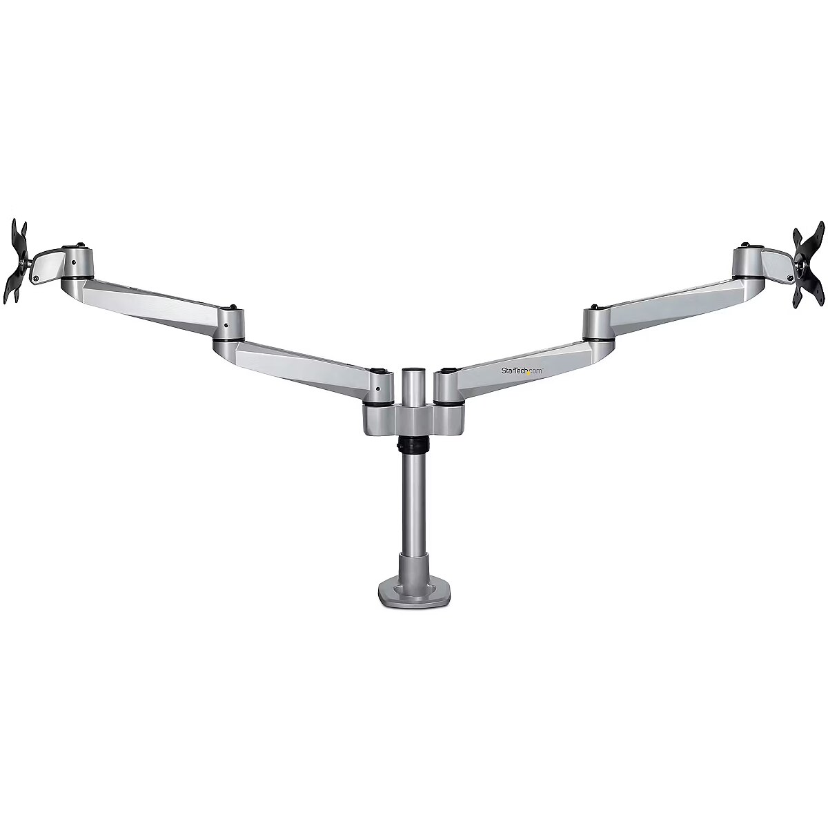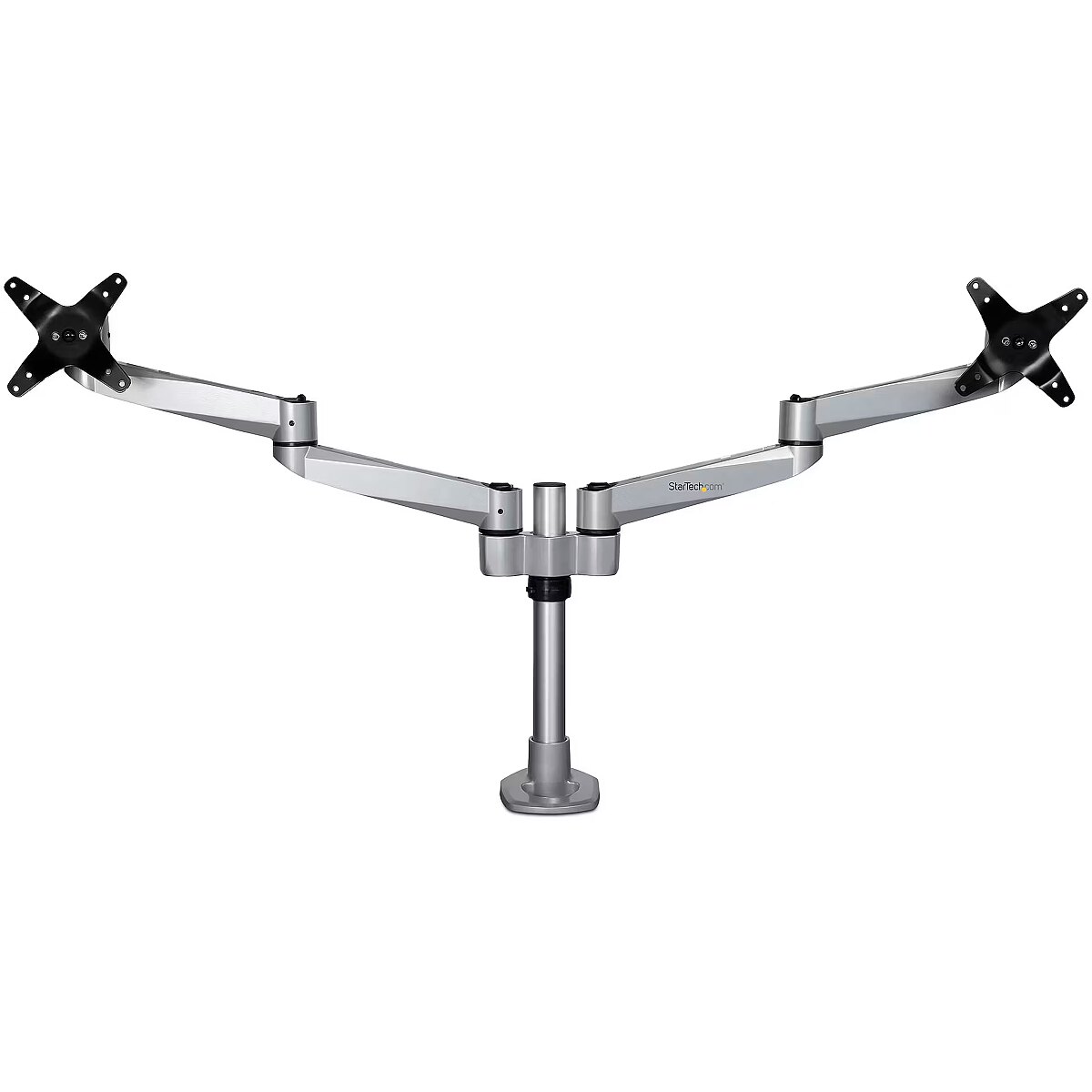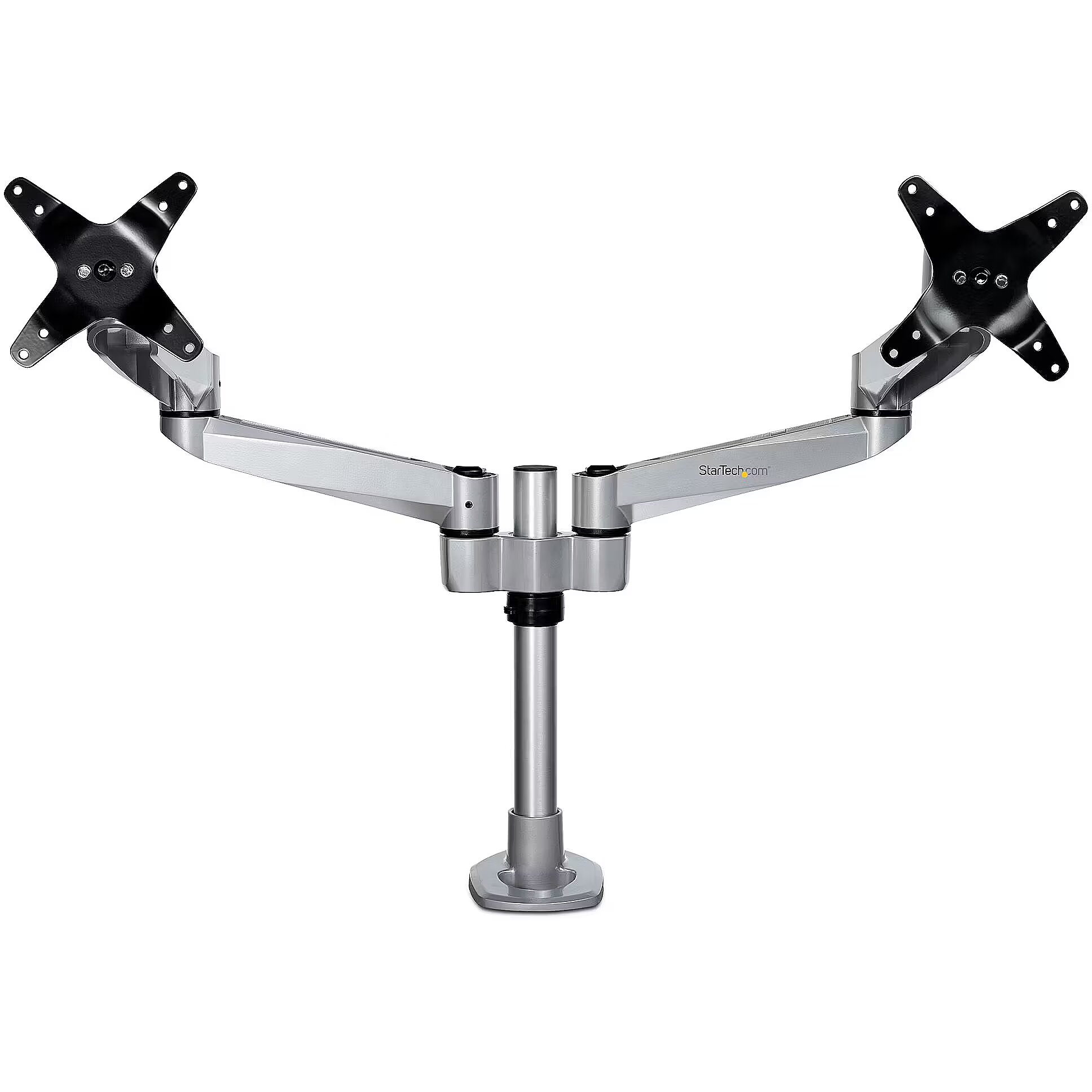 Title - StarTech.com Desk Mount Dual Monitor Arm - Premium Articulating Monitor Arm - up to 30” VESA Mount Displays - Height Adjustable Monitor Mount - Rotate/Tilt/Swivel - Clamp/Grommet - Silver