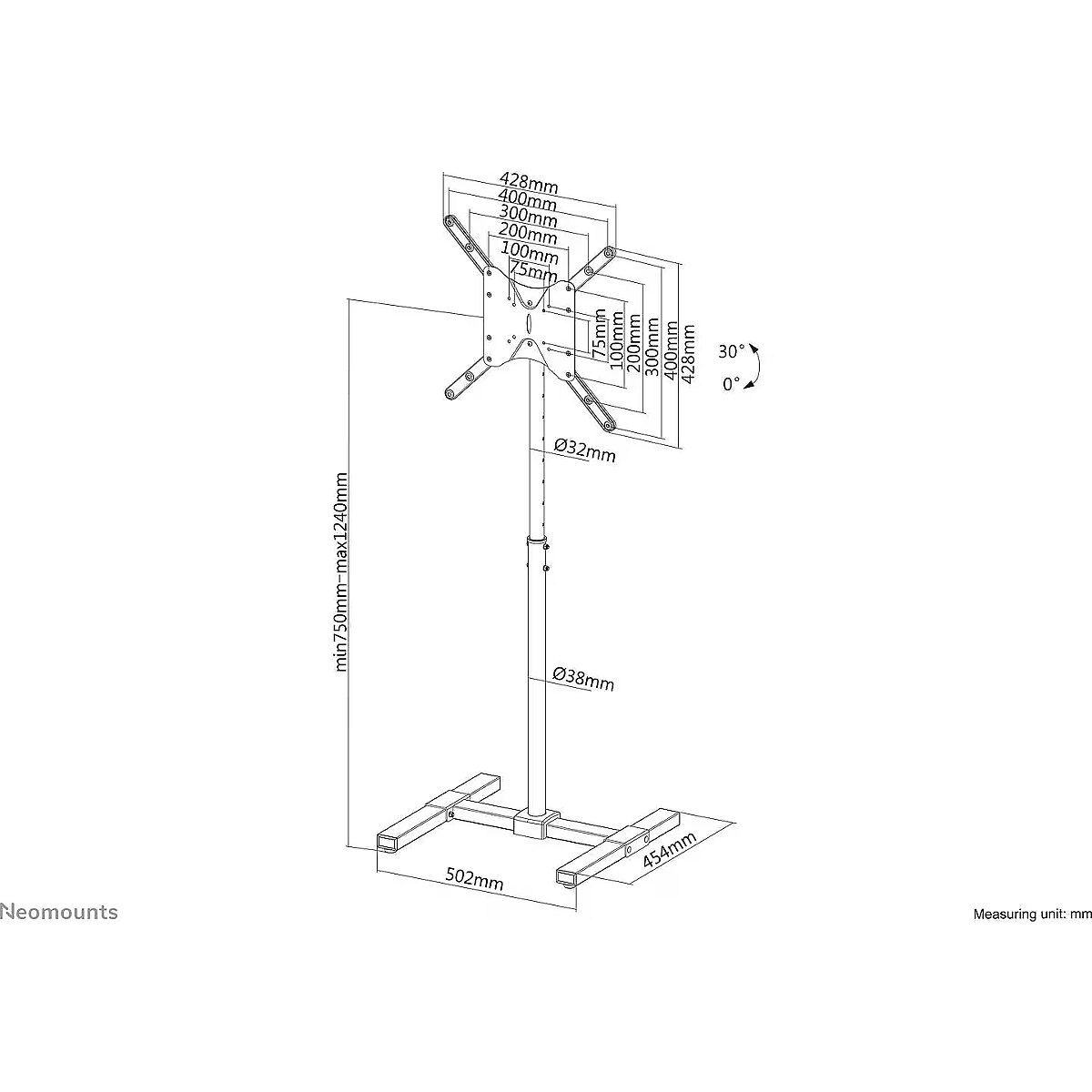 LongDesc - The Neomounts floor stand, model NS-FS100BLACK is a floor stand for flat screens up to 55". This stand is a great choice for space saving placement or when wall-, ceiling mounting or desk placement is not an option. Get optimal positioning for both standing and seated audiences, in any application, in any part of your location with the Neomounts versatile tilt (30°) technology. The mount is manually height adjustable from 75 to 124 centimetres.Neomounts NS-FS100BLACK is suitable for screens up to 55" (140 cm). The weight capacity of this product is 20 kg each screen. The stand is suitable for screens that meet VESA hole pattern 75x75 to 400x400mm. All installation material is included with the product.