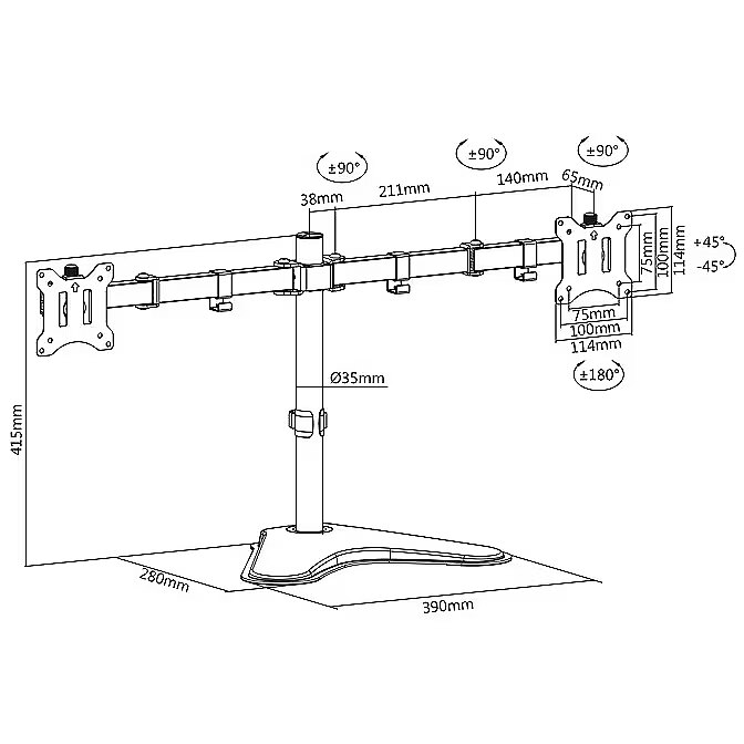 Description - Ramię na monitory umożliwia indywidualne ustawianie monitorów 15"-32". Możliwe jest odchylanie, pochylanie, obracanie i regulacja wysokości monitora.
