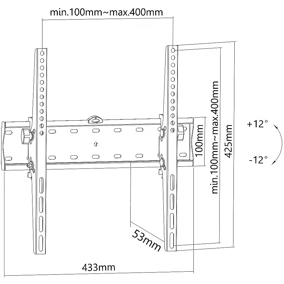 LongSummaryDescription - Neomounts FPMA-W350BLACK TV mount wall 32-55" - tiltable. Maximum weight capacity: 40 kg, Minimum screen size: 81.3 cm (32"), Maximum screen size: 139.7 cm (55"), Minimum VESA mount: 200 x 200 mm, Maximum VESA mount: 400 x 400 mm. Height adjustment range: 0 - 425 mm, Tilt angle range: 0 - 24°, Distance to the wall (max): 5.3 cm. Product colour: Black