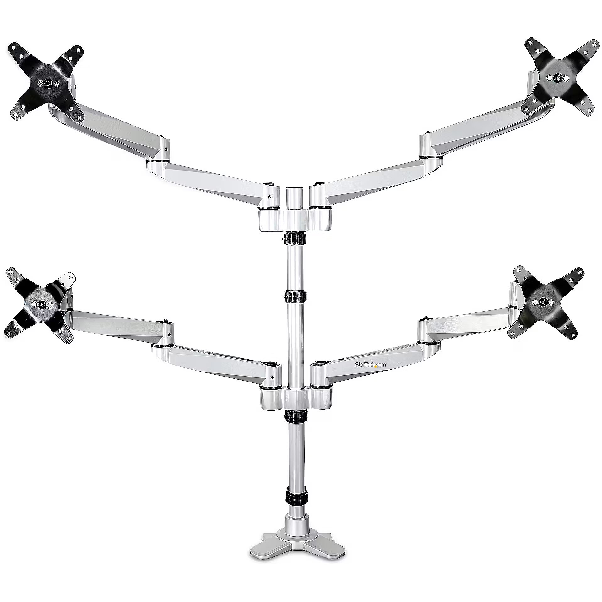 Title - StarTech.com Desk Mount Quad Monitor Arm – Premium Articulating VESA 4 Monitor Mount 2x2 up to 30" – Ergonomic Height Adjustable Pole Mount - Tilt/Swivel/Rotate - C-Clamp/Grommet - Silver