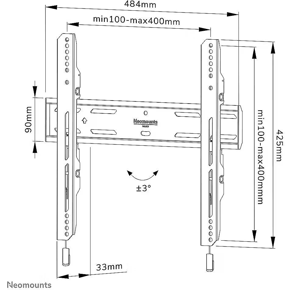 LongProductName - Neomounts LEVEL-850 WL30S-850BL14 Fixed TV mount wall - 32-75" - max 50 kg - VESA 100x100-400x400 - d 3,3 cm - level adjustment - lockable (incl. security screw, excl. lock) - Rapid Install-model incl. fixing template - black