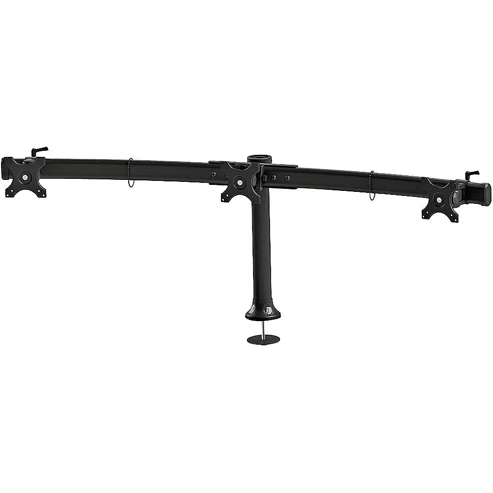 LongDesc - The Neomounts desk mount, model FPMA-D700DD3 is a tilt- and rotatable desk mount for 3 flat screens up to 27". This mount is a great choice for space saving placement on desks using a desk stand or grommet mount.Neomounts versatile rotate (360°) and swivel (45°) technology allows the mount to change to any viewing angle to fully benefit from the capabilities of the flat screen. The mount is manually height adjustable from 32 to 42 centimetres. Depth 7 centimetres. An innovative cable management conceals and routes cables from mount to flat screen. Hide your cables to keep the workplace nice and tidy.Neomounts FPMA-D700DD3 has one pivot point and is suitable for screens up to 27" (69 cm). The weight capacity of this product is 8 kg each screen. The desk mount is suitable for screens that meet VESA hole pattern 75x75 or 100x100mm. Different hole patterns can be covered using Neomounts VESA adapter plates.By using an ergonomic mount neck- and back complaints can be avoided. Ideal for use in offices and on counters or in a reception area.All installation material is included with the product.
