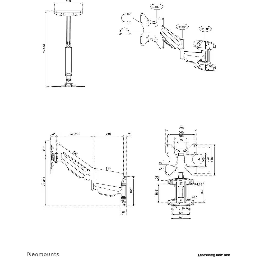 Description - NEOMOUNTS BY NEWSTAR WALL MOUNTED GAS SPRING TV MOUNT (3 PIVOTS VESA 200X200)