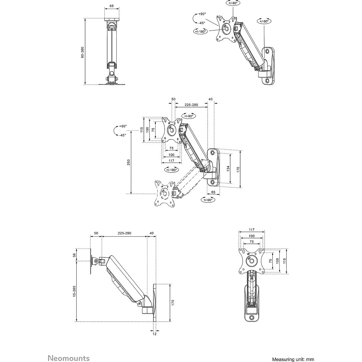 Description - NEOMOUNTS BY NEWSTAR WALL MOUNTED GAS SPRING MONITOR ARM (2 PIVOTS VESA 100X100)