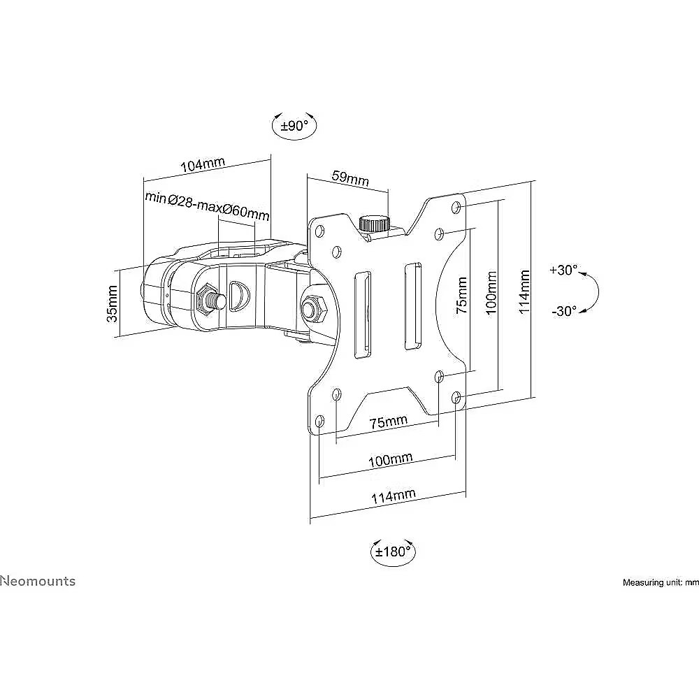 Description - NEOMOUNTS BY NEWSTAR SCREEN POLE CLAMP/TRUSS MOUNT 1 PIVOT VESA 100X100 (POLE DIAMETER 28-60 MM)