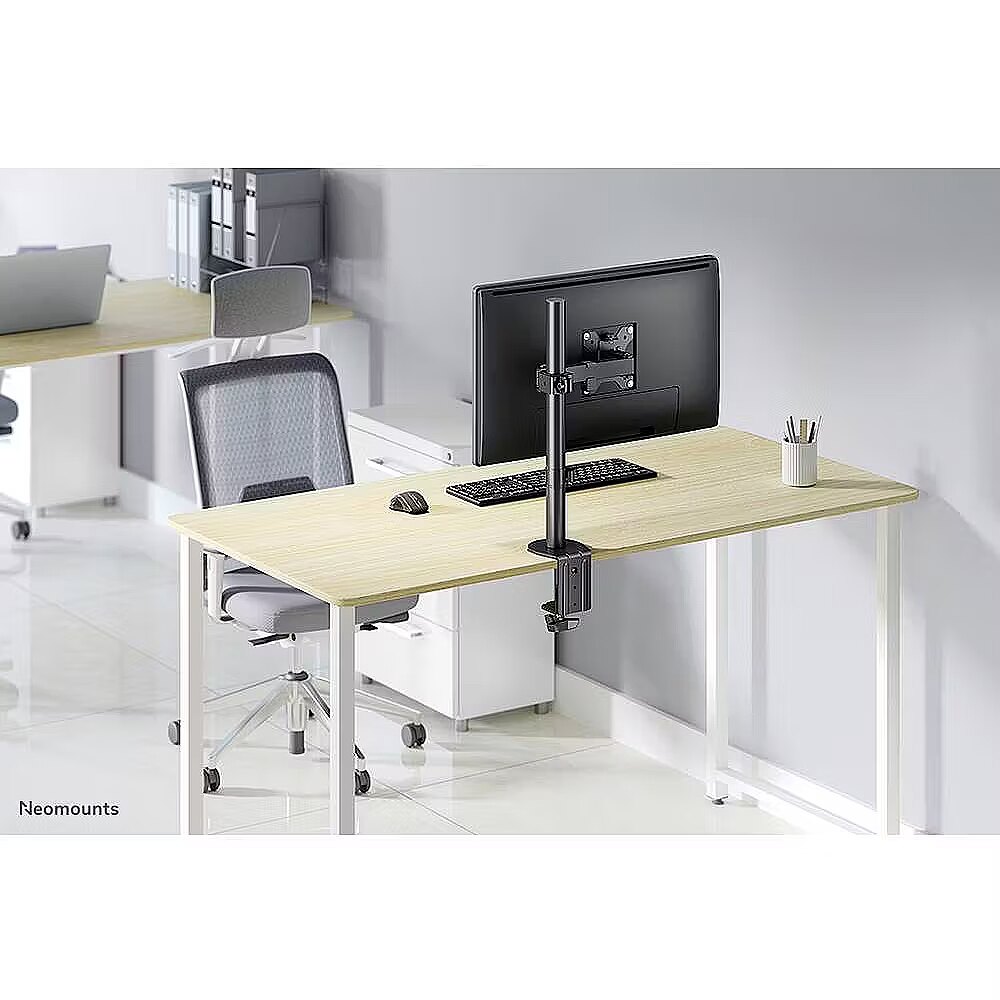 LongDesc - The Neomounts desk mount, model FPMA-D540BLACK is a tilt-, swivel and rotatable desk mount for monitors up to 32". This mount is a great choice for space saving placement on desks using a desk clamp or grommet mount.Neomounts' versatile tilt (90°), rotate (360°) and swivel (180°) technology allows the mount to change to any viewing angle to fully benefit from the capabilities of the flat screen. The mount is manually height adjustable from 2,1 to 42,2 centimeters. The depth is adjustable from 0 to 26,6 centimeters. An innovative cable management routes cables from mount to flat screen. Additionally, the mount features a Quick-release VESA, that allows you to attach the monitor in a wink of an eye.Neomounts FPMA-D540BLACK has two pivot points and is suitable for screens up to 32". The weight capacity of this product is 8 kg. The desk mount is suitable for screens that meet VESA hole pattern 75x75 or 100x100mm. Different hole patterns can be covered using Neomounts VESA adapter plates.By using an ergonomic mount neck- and back complaints can be avoided. Ideal for use in offices and on counters or in a reception area.All installation material is included with the product.