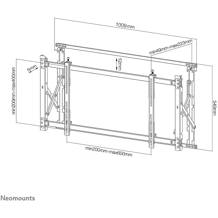 LongProductName - Neomounts LED-VW1750BLACK Videowall wall mount - 32-55" - max 35 kg - VESA 200x200-600x400 - d 4,9-22,3 cm - pull-out - micro adjustment - black