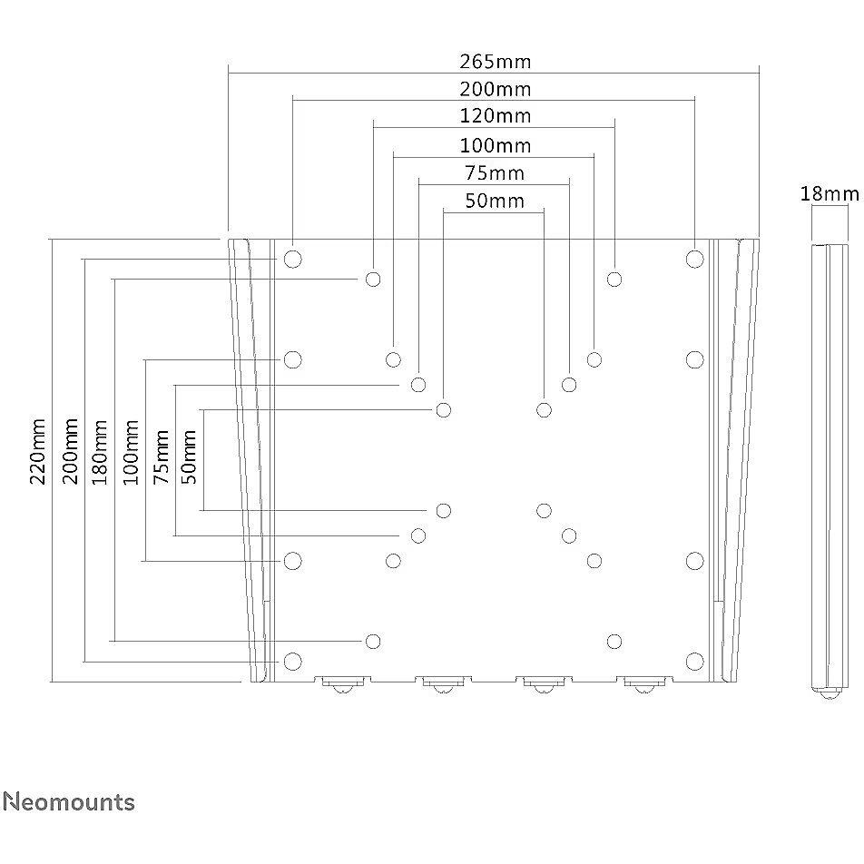 LongDesc - The Neomounts wall mount, model FPMA-W110 is a fixed wall mount for flat screens up to 40" (102 cm). This mount is a great choice when you want the ultimate viewing flexibility with your flat screen. Depth of this mount is 1,8 centimetres. Neomounts FPMA-W110 is suitable for screens up to 40" (100 cm). The weight capacity of this product is 35 kg each screen. The wall mount is suitable for screens that meet VESA hole pattern 75x75 to 200x200mm. Different hole patterns can be covered using Neomounts VESA adapter plates.Create a clean design ambiance for your flat screen TV in the living room, bedroom or home cinema. All installation material is included with the product. The product can be locked by 2 screws on the below part of the plate.
