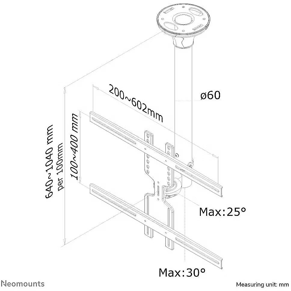 Short summary - Neomounts FPMA-C400BLACK Monitor/TV mount ceiling 1 screen - 32-60" - max 35 kg - VESA 200x200-600x400 - h 64-104 cm - black