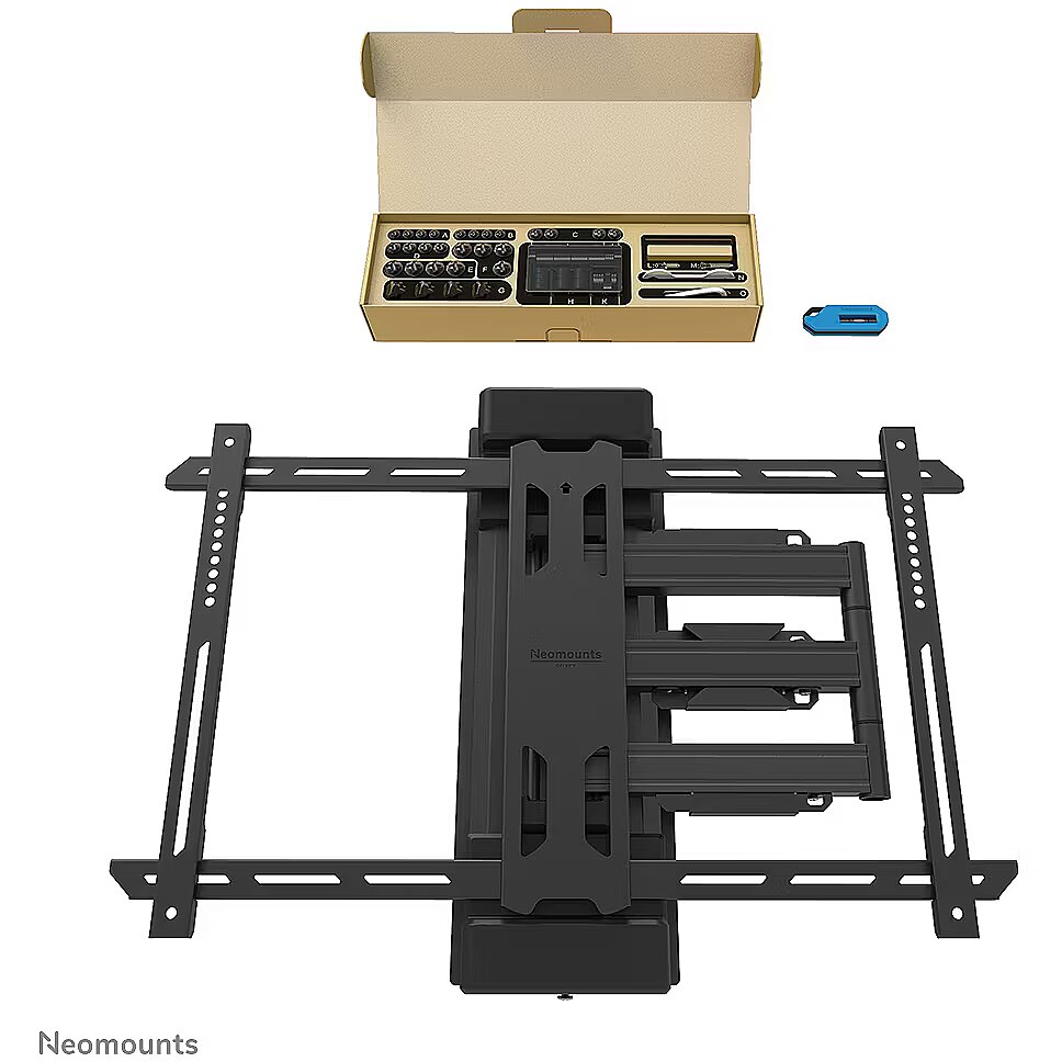 Description - The Neomounts Select WL40S-910BL16 is a full motion pillar mount for screens up to 70" with a maximum weight capacity of 45 kg. The versatile tilt (14°) and swivel (90°) technology allows you to create the optimum viewing angle. The mount is suitable for Ø25-100 cm cylinder, square and rectangular pillars. Level adjustment is available for the perfect installation. The WL40S-910BL16 has a depth of 8,2-59 cm and is suitable for screens that meet VESA hole pattern 200x100 to 600x400 mm. The mount is equipped with metal cable management to secure any loose cables. The ratchet clamp ensures easy installation, as well as the separate magnetic spirit level tool that is included.
