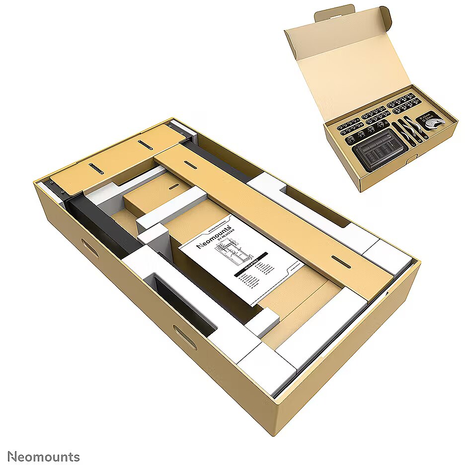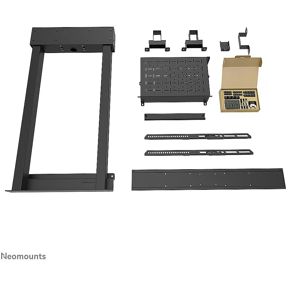 Description - Neomounts WL55-875BL1 motorized wall mount for screens 37-100" - black The Neomounts by Newstar WL55-875BL1 is a wall mount for displays up to 100" diagonal with a maximum load of 110kg. The mount has a motorised height adjustment of 65cm (35mm/second), is operated via a wired remote control and offers an anti-collision system for extra safety A lockable, ventilated equipment compartment with cable opening is included and optional for installation. A bracket floor plate with space for skirting boards ensures a robust and secure installation. Optional cable duct included for installing, concealing and routing cables from the wall mount to the screen. The wall bracket is packaged partially pre-assembled for quick and easy installation and can be locked with a padlock (not included). In addition, the WL55-875BL1 is compactly packaged for optimum transport and storage. An optional videobar & multimedia kit, the AFL-875BL1, is available, which allows a separate camera shelf and a shelf for multimedia devices to be fitted to the trolley. An adapter for the Logitech Rally Bar (Mini) steering wheel is included. In addition, the multimedia shelf is suitable for mounting a Logitech tap, among others.