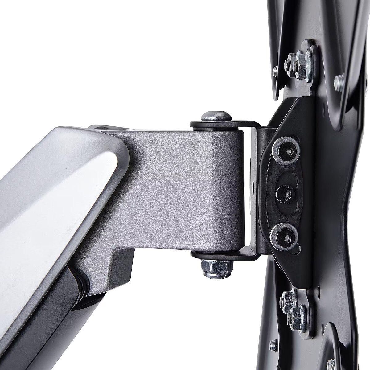 LongDesc - Mounting Hardware Included | One-touch Adjustments | Digital SignageThe steel and aluminum construction of this VESA TV Wall Mount supports TVs from 23" to 55" and up to 66lb (30kg). The arm assembly provides smooth one-touch height adjustment thanks to its spring-loaded mechanism that acts as a counterbalance. The VESA plate supports mounting patterns of 75x75 to 400x400.Versatile TV MountingSecurely mount a flat or curved-screen TV or digital signage in a convenient location for viewing by visitors, clients, and employees. This TV wall mount is ideal for lobbies, boardrooms, and manufacturing facilities. The lateral range of 3.54 ft (1.08m) is ideal for corner mounting. The jointed arm folds on itself and creates a slim profile from the wall of just 2.2in (5.8cm) for limited space installations. The minimum TV weight is 17.6lb (8kg). M5/M6/M8 Screws of various lengths and an assortment of washers and spacers enhance TV mounting compatibility. Mount into wood-stud or concrete walls, using the included hardware.Supported VESA mounting patterns: 75x75,100x100, 200x100, 200x200, 300x300, 400x200, and 400x400.Full-Motion AdjustmentThe VESA plate swivels +90 / -90 degrees, tilts +8 / -15 degrees, and rotates +3 / -3 degrees. Customize the viewing experience and comfort with these full-motion capabilities. The one-touch spring-assisted mechanism facilitates effortless height adjustments, with a range of up to 12.6in (32cm).The arm assembly extends up to 23.4 in (59.5 cm) from the wall to accommodate different viewing positions.Durable ConstructionThe robust steel and aluminum design safely and securely supports the TV. The arm assembly features built-in cable management and a wall mount cover for a an organized and visually appealing installation.The height adjustable TV wall mount is backed for two years, including free lifetime 24/5 multi-lingual technical assistance.The StarTech.com Advantage