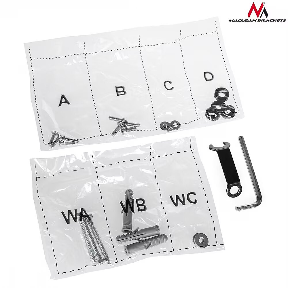 Accessories included - TV holder 13-32 "Maclean MC-740 30kg A set of mounting bolts for the wall and for screwing the TV Original packaging User manual