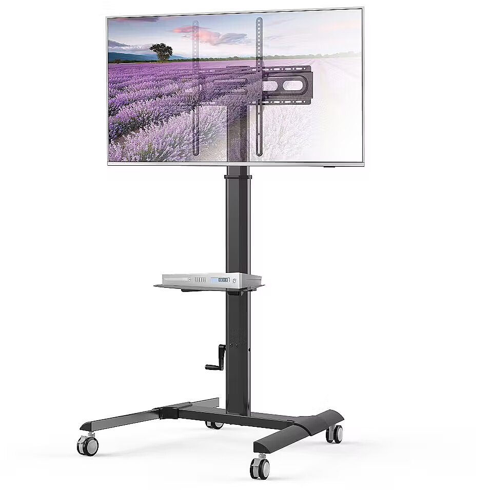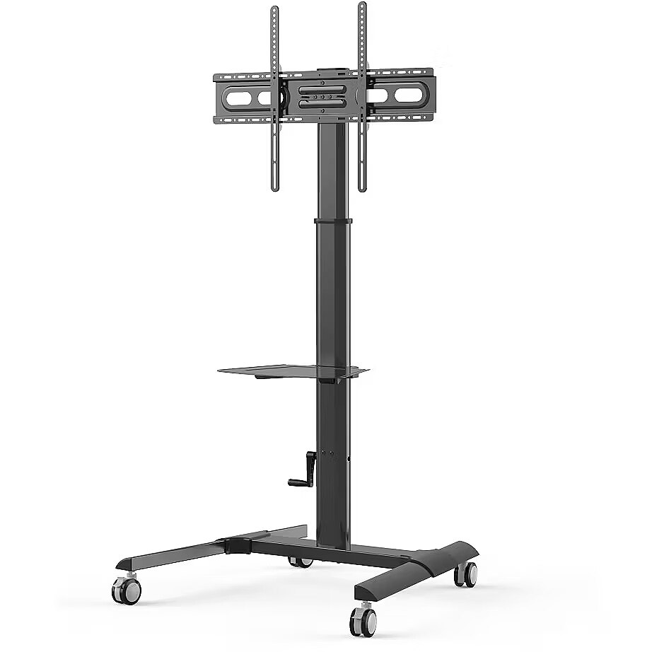 Description - Multifunctional bracket for 32-70 inch LED/LCD TVs; The adjustable TV bracket gives you the perfect viewing height VESA standards supported by cart: 200 x 200, 300 x 300, 400 x 200, 400 x 400 and 600 x 400; Supported weight: 40 kg Equipped with a height-adjustable shelf for AV components; Retractable bars reduce overall dimensions for easy transport Heavy-duty wheels with structural reinforcement to support the weight of your equipment and ensure maneuverability