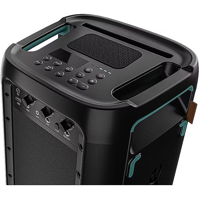 LongDesc - Create endless memories with friends & family with the Party Rocker HP100 Speaker. The powerful portable 300W speaker is the ultimate party starter with battery support up to 15 hours. While you enjoy the music beats, you can even wirelessly charge your phone. The speaker supports 5 changing LED colours and gives you the option to add your own music effects with the DJ effect feature. The anti splash feature on the top-panel makes this the perfect party starter for any event! You can double your fun by wirelessly linking to another HP100 via Bluetooth*