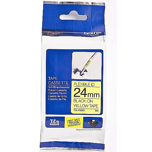 Name - Brother | TZe-FX651 Flexible ID Laminated Tape | Black on Yellow | TZe | 8 m | 2.4 cm